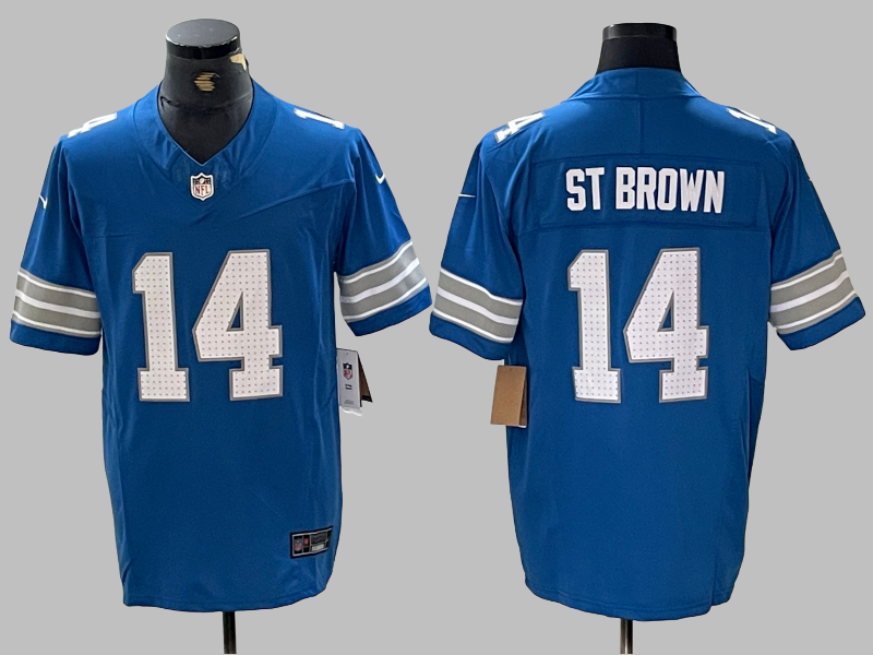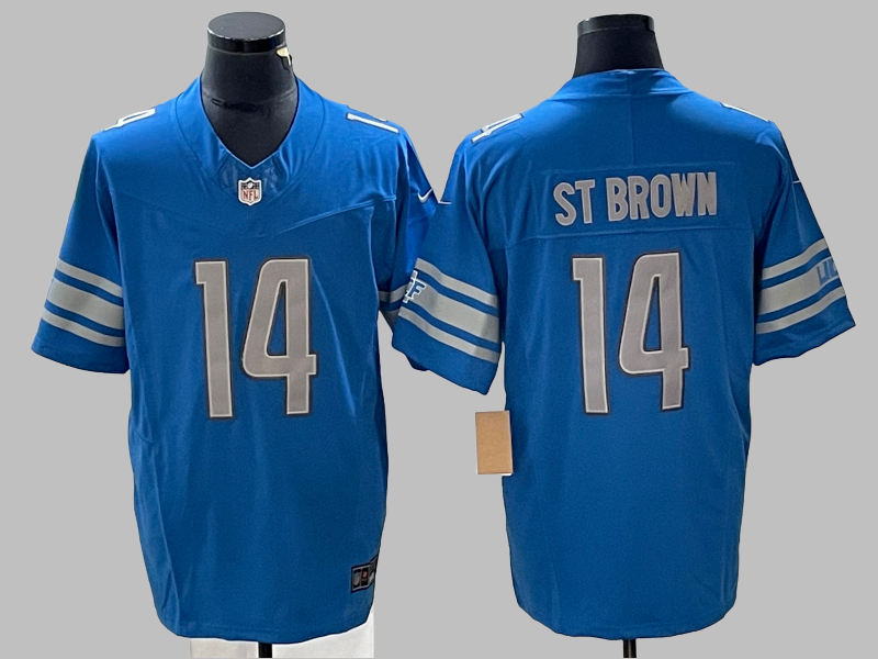 Men's Detroit Lions #14 Amon-Ra St. Brown Blue Stitched Vapor F.U.S.E. Limited NFL Jersey