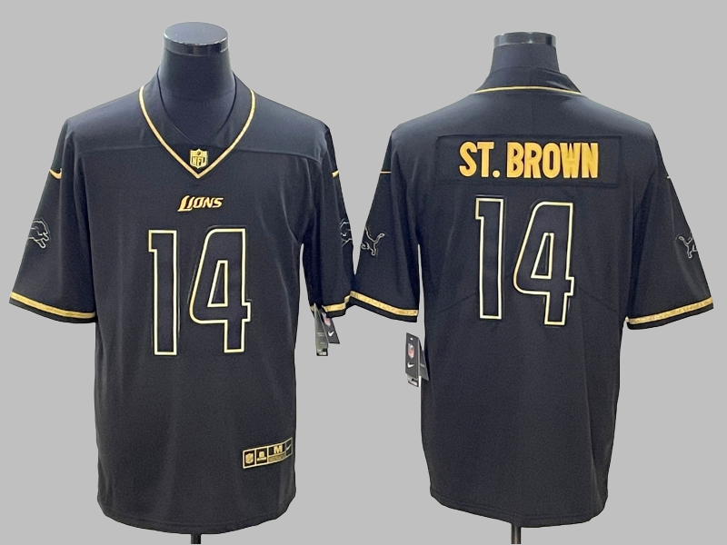 Men's Detroit Lions #14 Amon-Ra St. Brown Stitched Vapor F.U.S.E. Limited NFL Jersey Black Gold