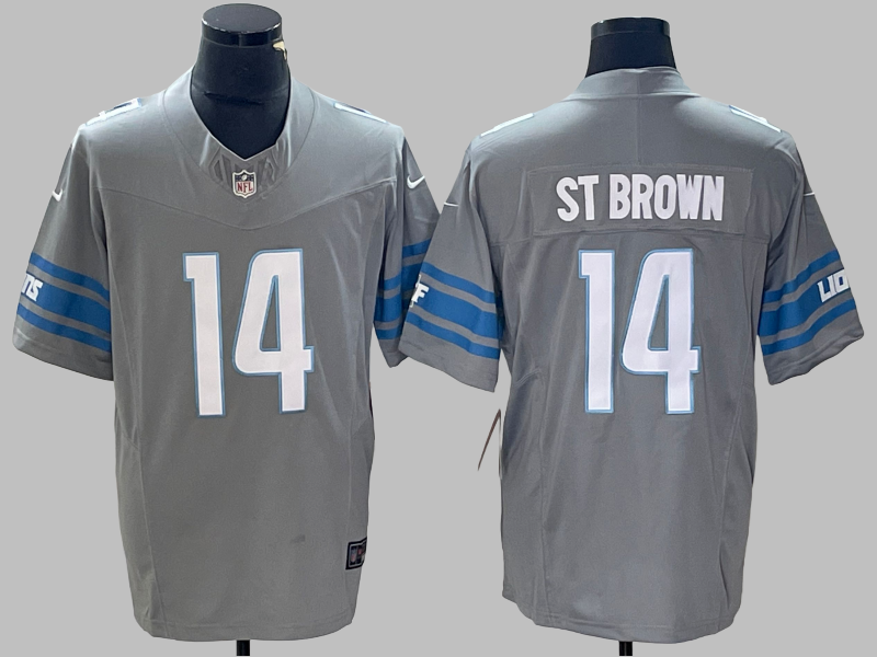 Men's Detroit Lions #14 Amon-Ra St. Brown Stitched Vapor F.U.S.E. Limited NFL Jersey Grey