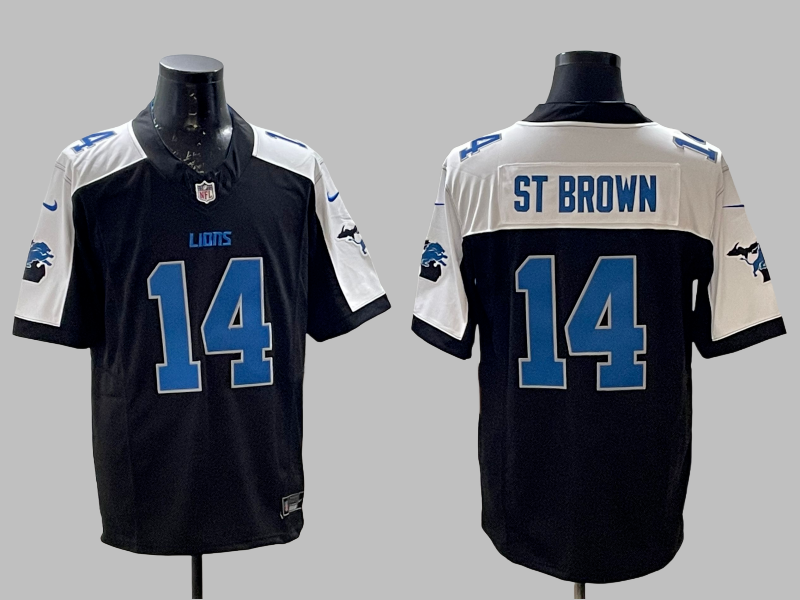 Men's Detroit Lions #14 Amon-Ra St. Brown Stitched Vapor F.U.S.E. Limited NFL Jersey Black White