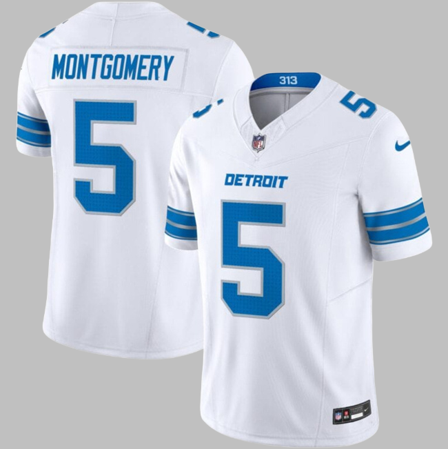 Men's Detroit Lions #5 David Montgomery All Stitched NFL Limited White Jersey