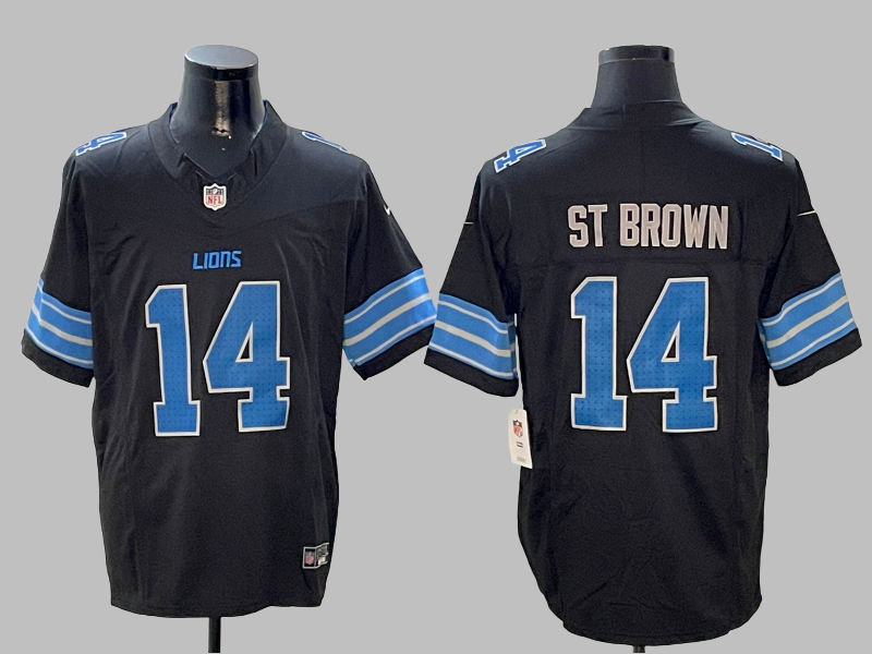 Men's Detroit Lions #14 Amon-Ra St. Brown Stitched Vapor F.U.S.E. Limited NFL Jersey Black