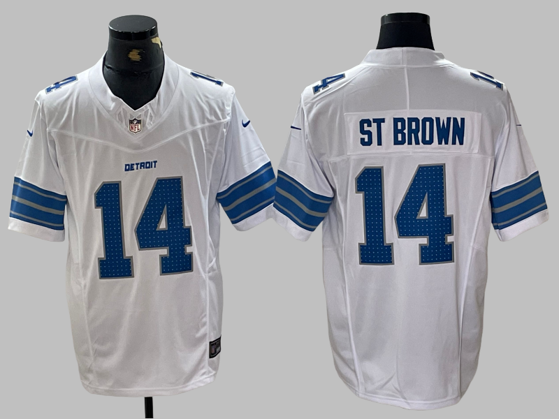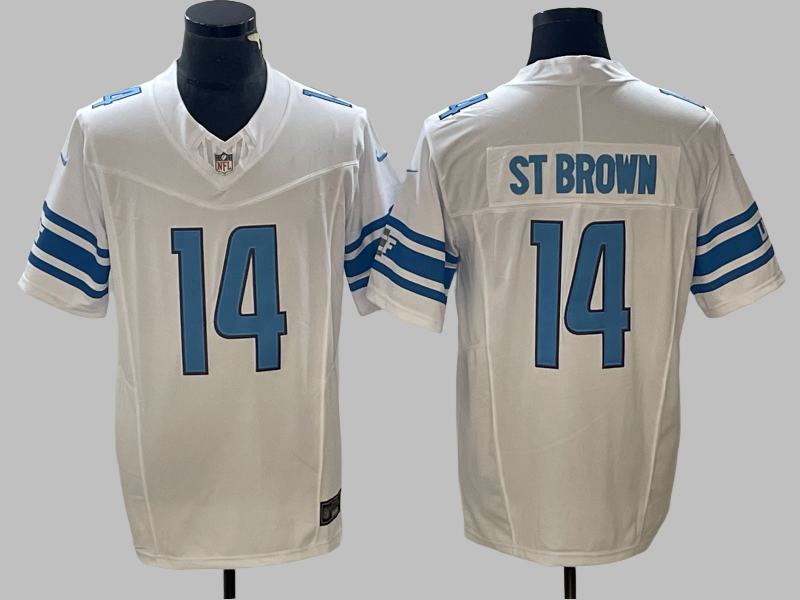 Men's Detroit Lions #14 Amon-Ra St. Brown White Stitched Vapor F.U.S.E. Limited NFL Jersey