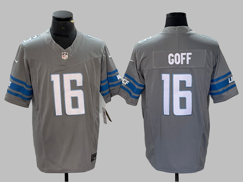 Men's Detroit Lions #16 Jared Goff Stitched Vapor F.U.S.E. Limited NFL Jersey Grey