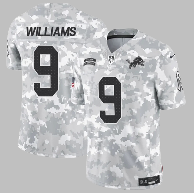 Men's Detroit Lions #9 Jameson Williams All Stitched Camo Salute To Service Limited NFL Jersey
