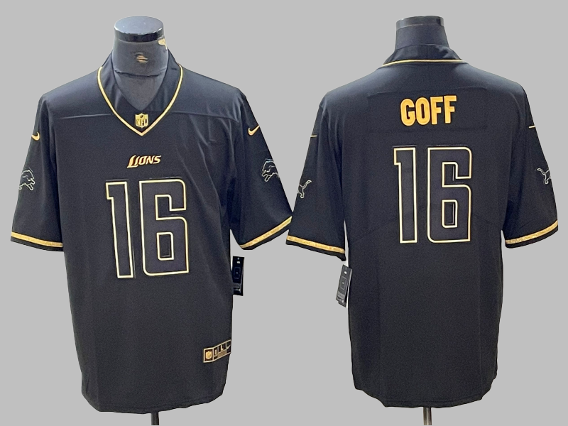 Men's Detroit Lions #16 Jared Goff Stitched Vapor F.U.S.E. Limited NFL Jersey Black Gold