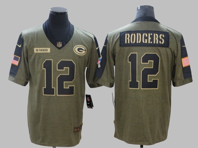 Green Bay Packers All Stitched Custom Olive Salute To Service NFL Jersey - Men's & Women's & Youth & Toddler