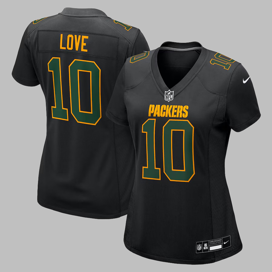 Women's Green Bay Packers #10 Jordan Love All Stitched NFL Black Jersey