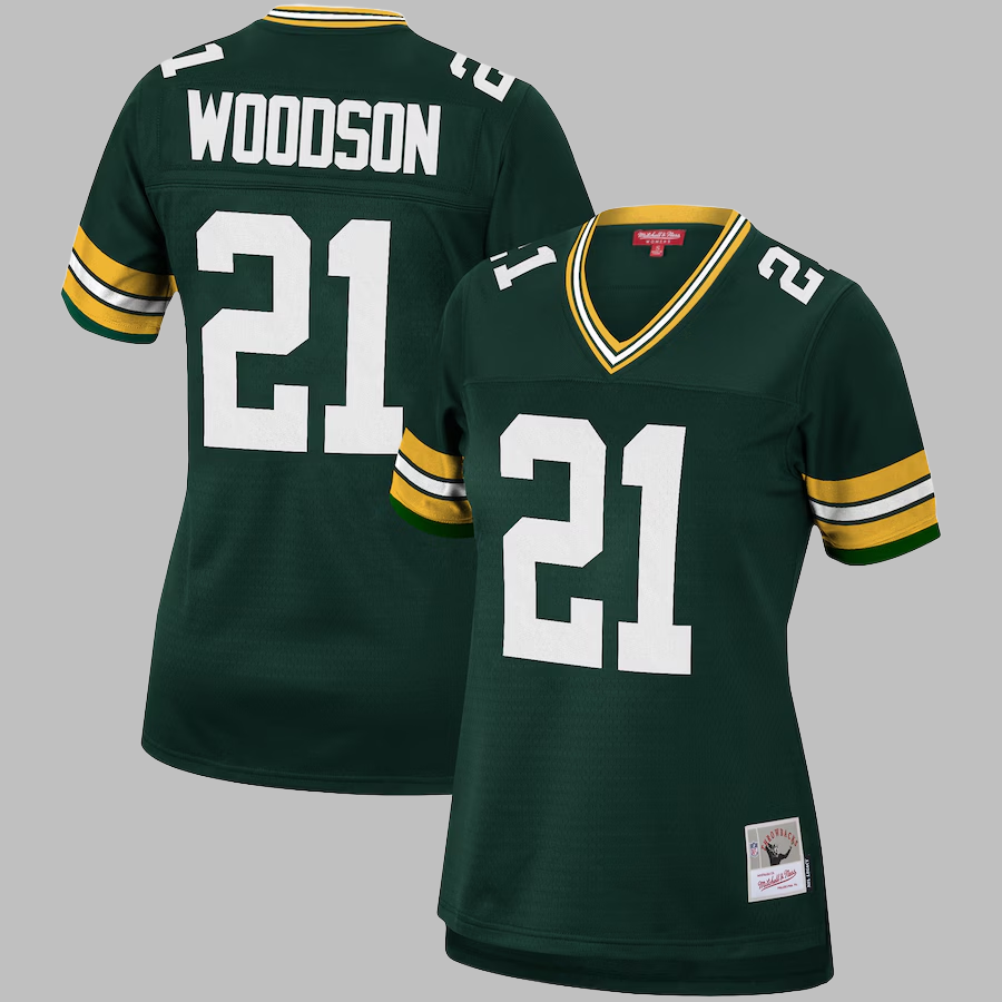 Women's Green Bay Packers #21 Charles Woodson Mitchell & Ness Green 2010 Legacy Jersey