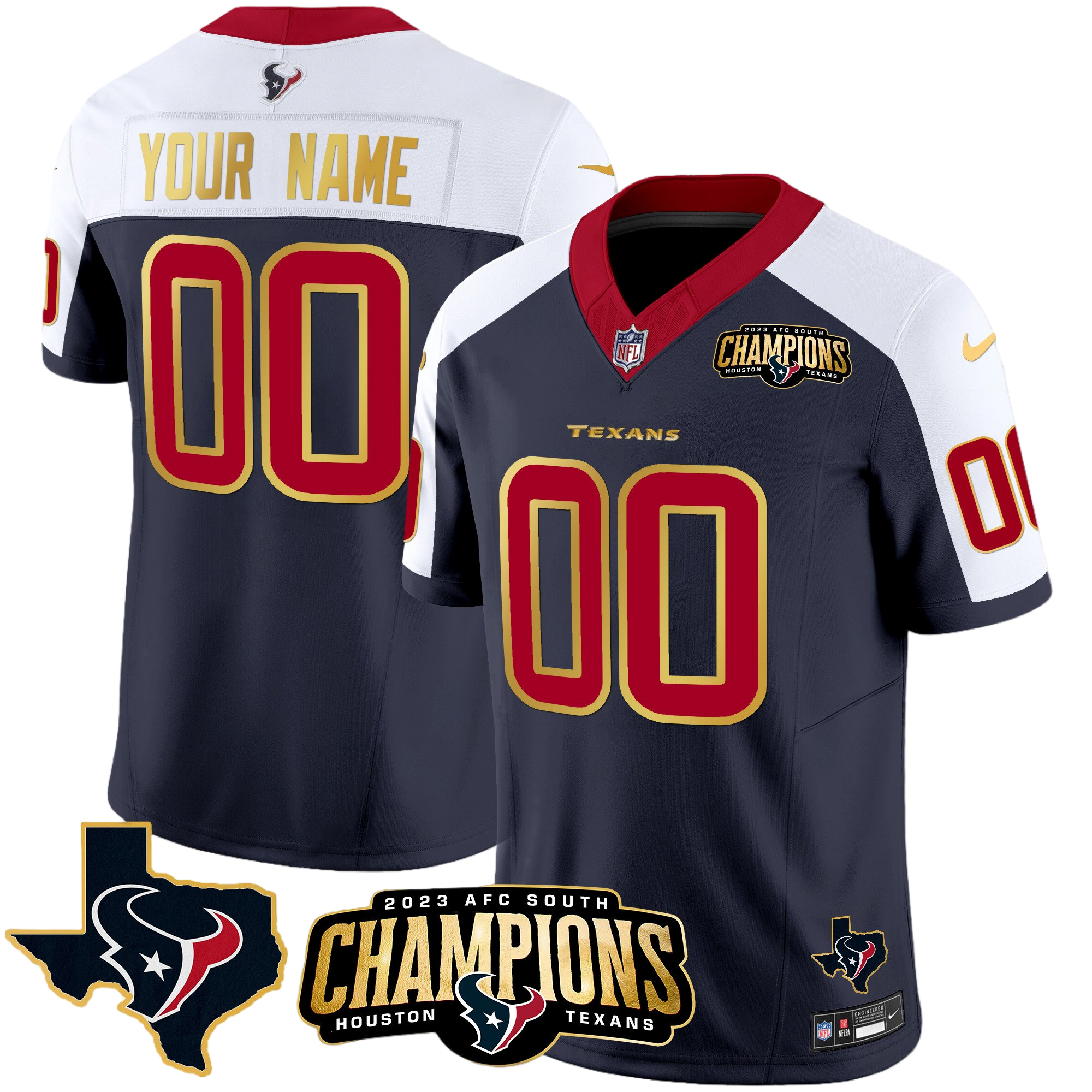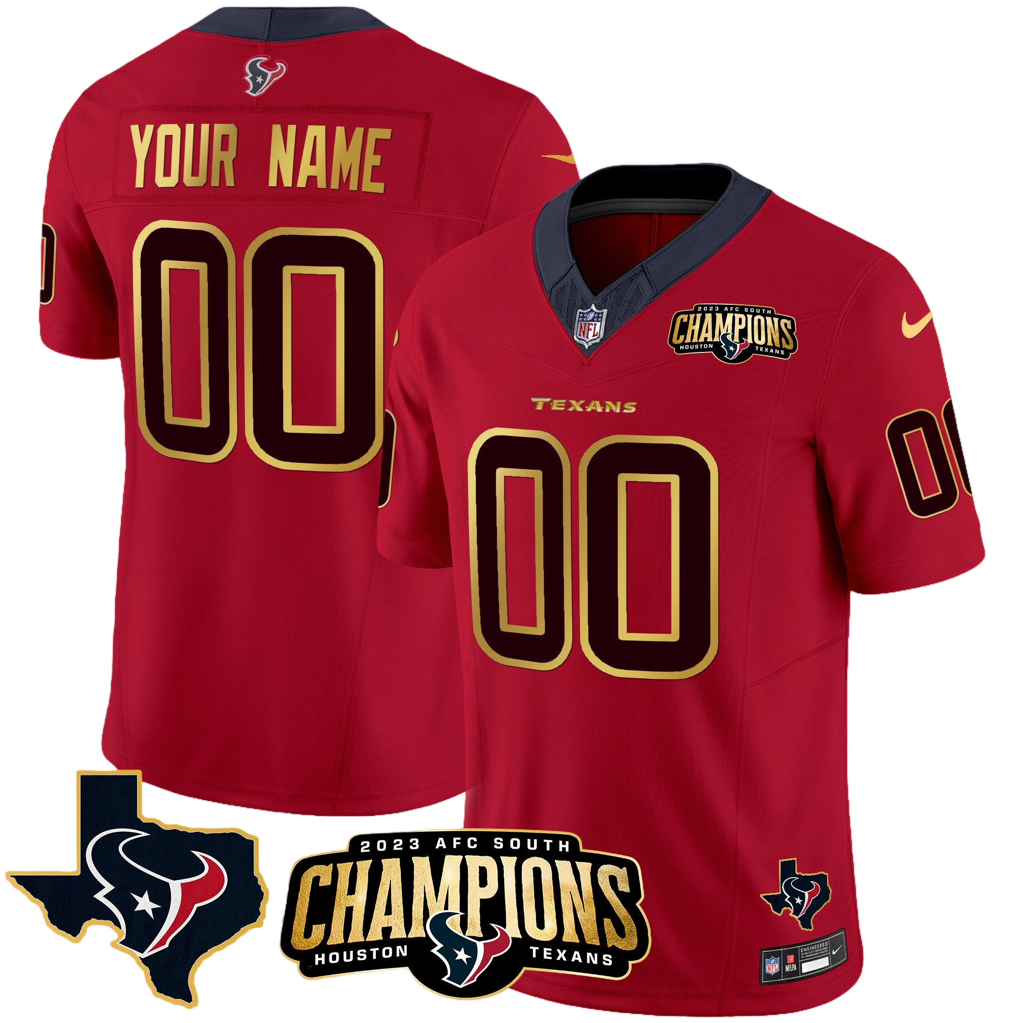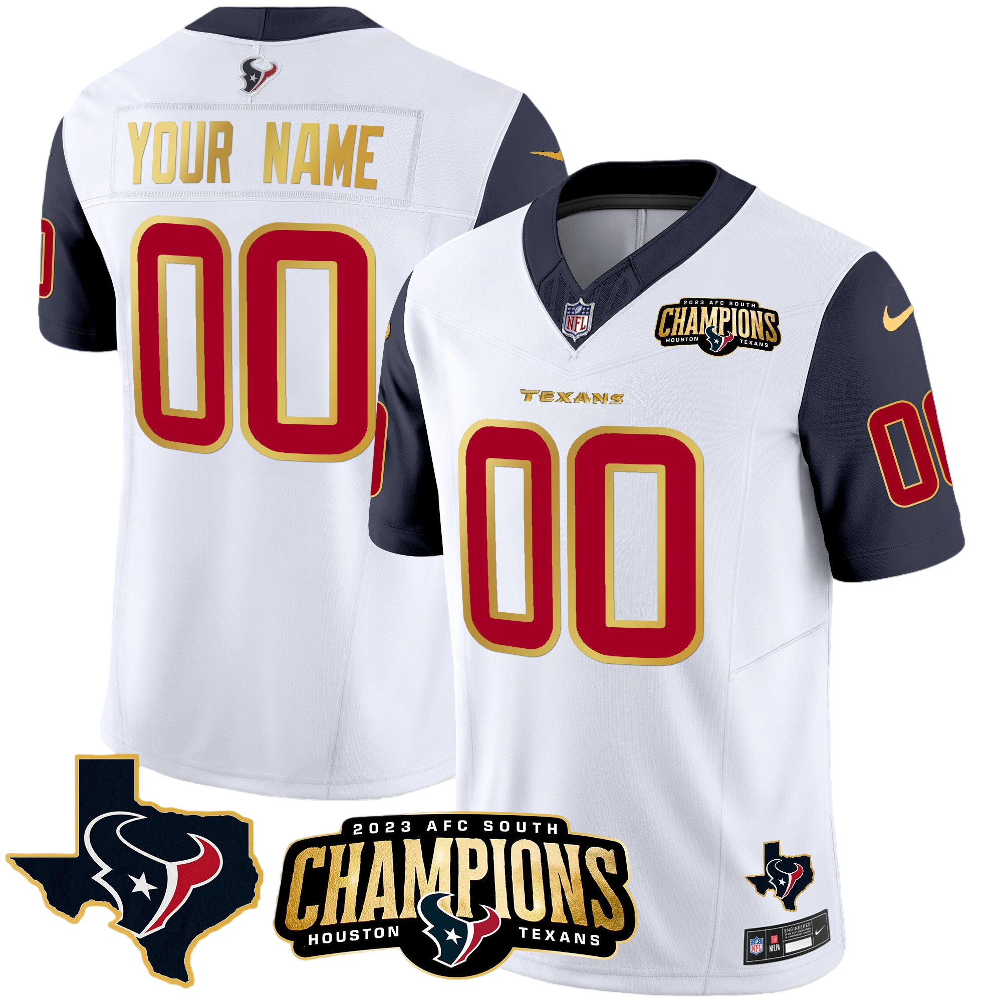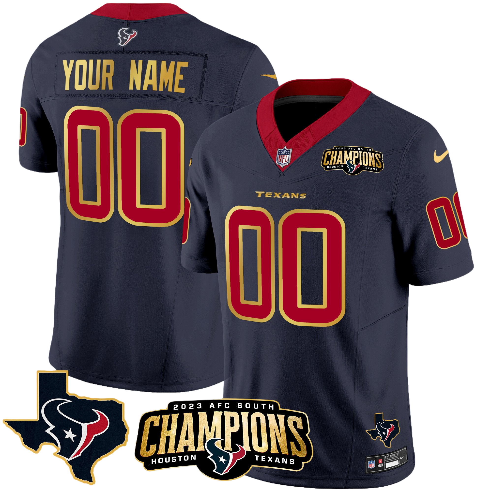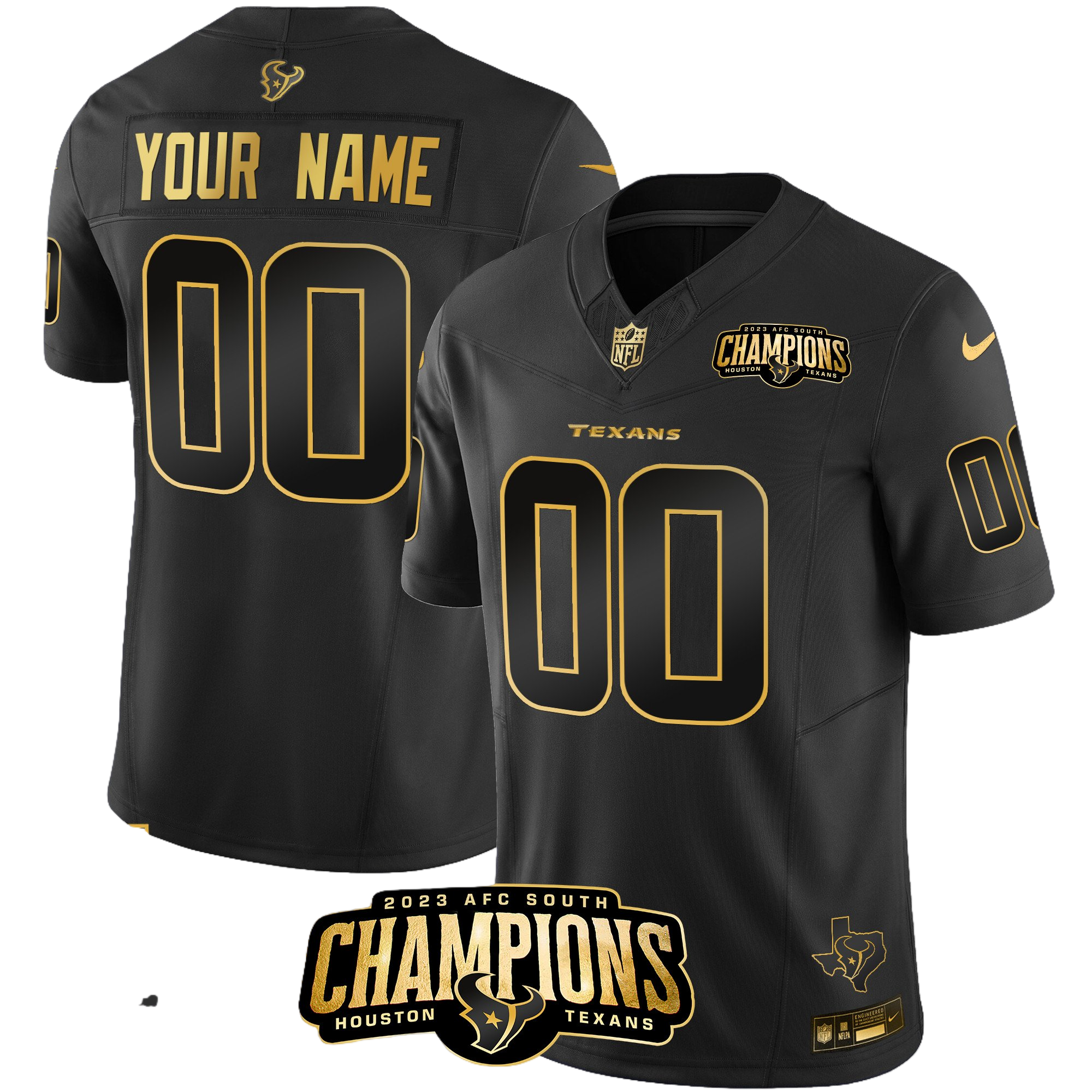 Houston Texans 2023 AFC South Champions Patch Gold Trim Vapor Custom Jersey – All Stitched 2