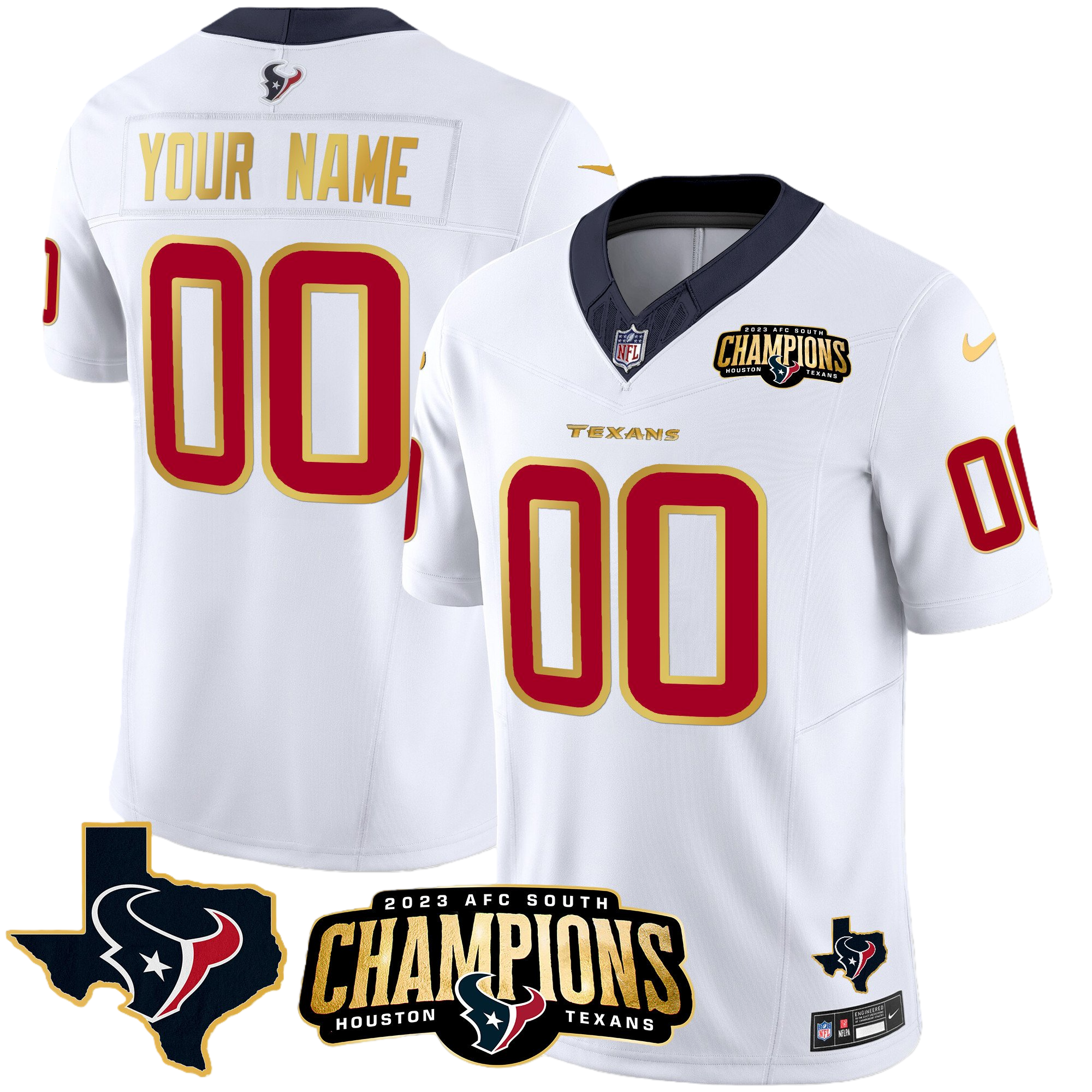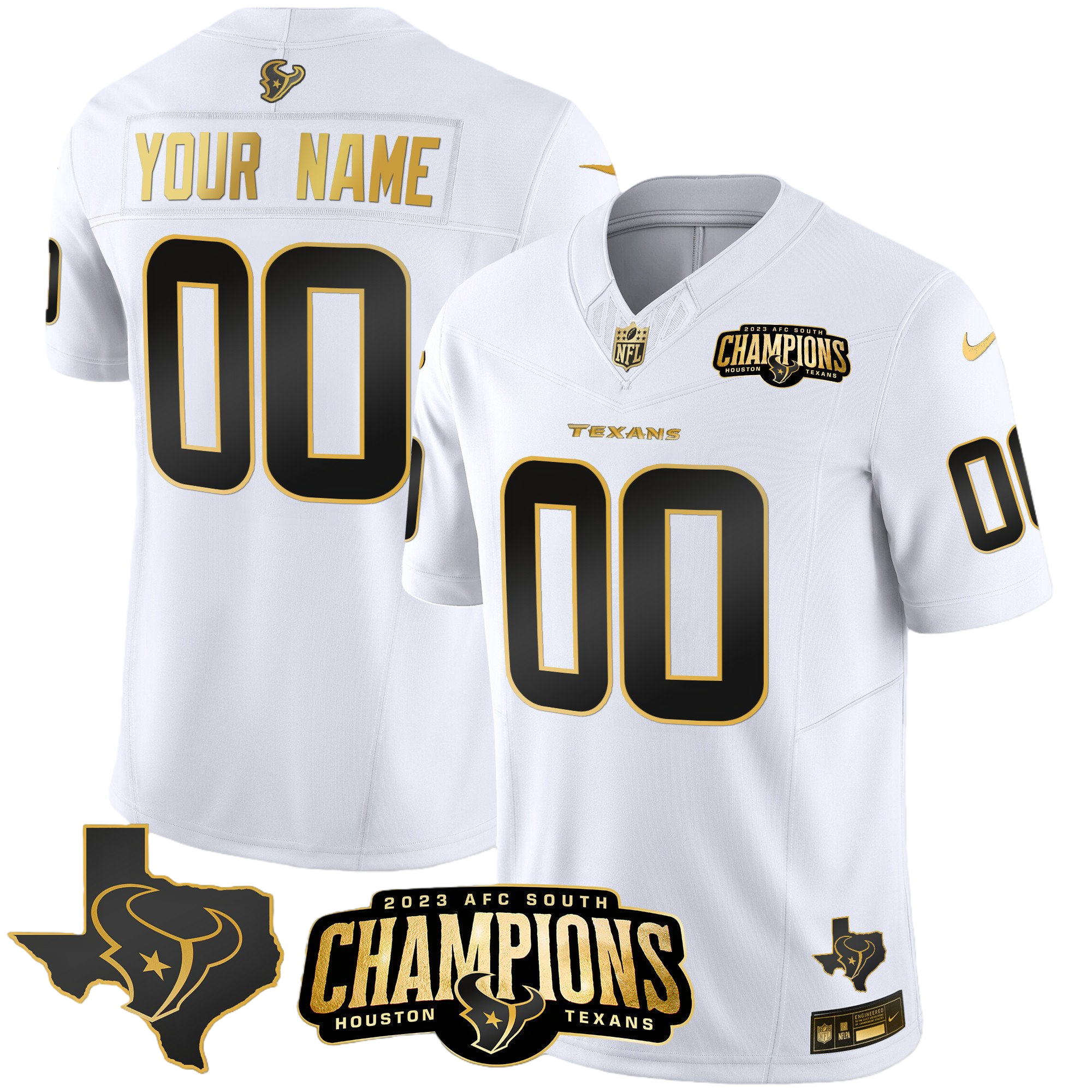 Houston Texans 2023 AFC South Champions Patch Gold Vapor Custom Jersey – All Stitched 2