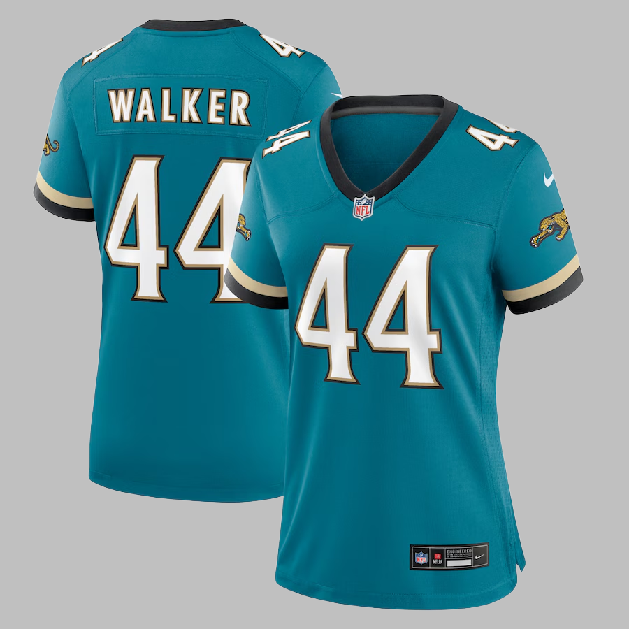 Women's Jacksonville Jaguars #44 Travon Walker Teal Prowler Throwback All Stitched NFL Jersey