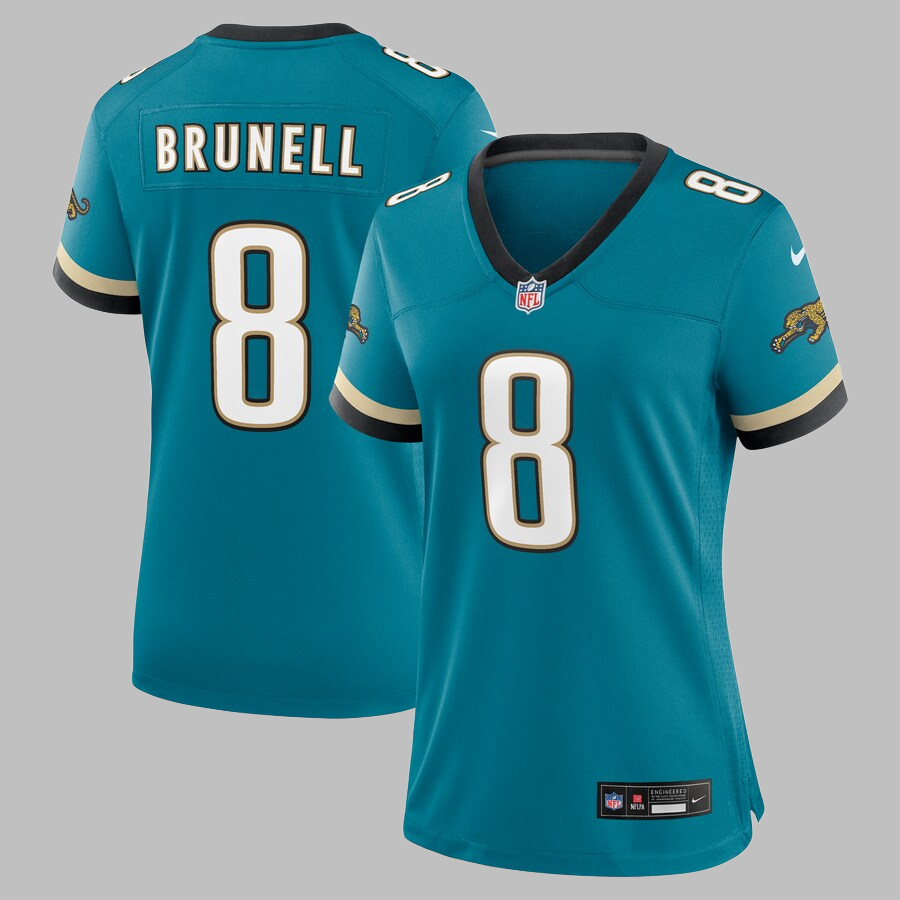 Women's Jacksonville Jaguars #8 Mark Brunell Teal Prowler Throwback All Stitched NFL Jersey