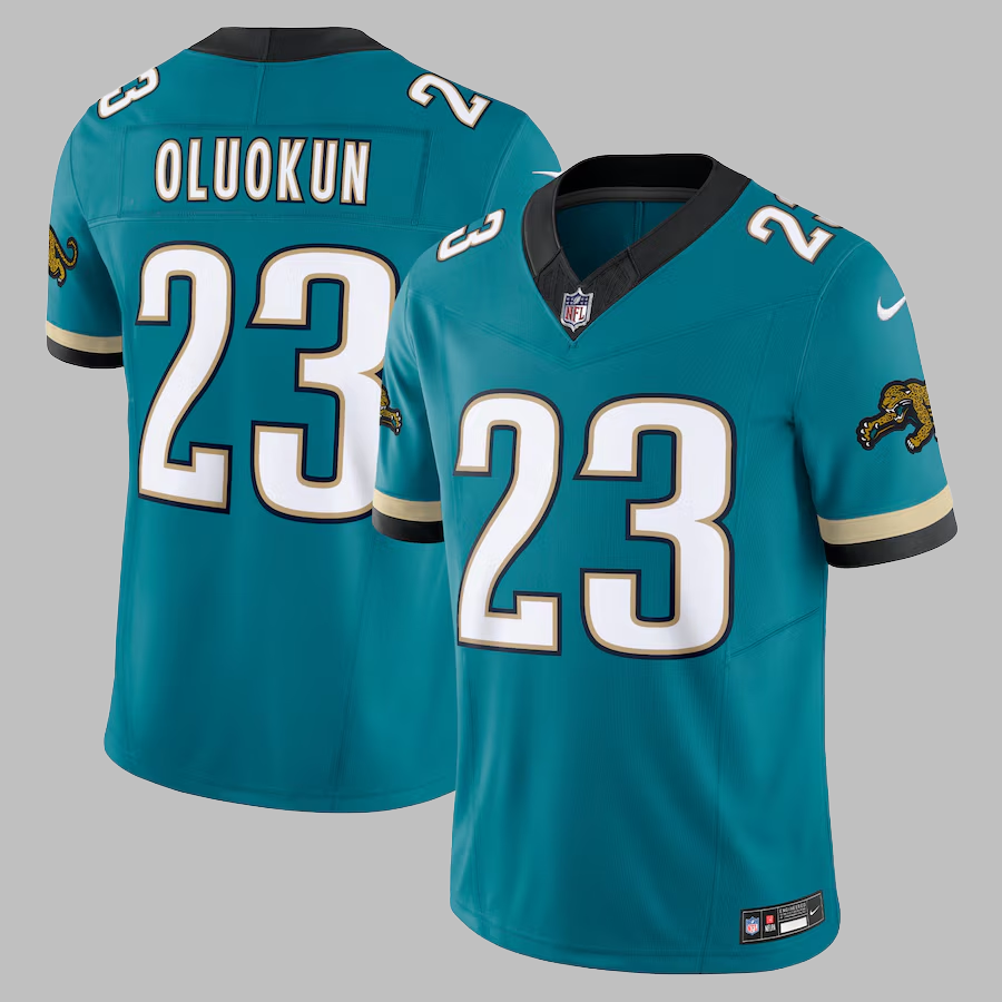 Men's Jacksonville Jaguars #23 Foye Oluokun All Stitched NFL Teal Prowler Throwback Vapor F.U.S.E. Limited Jersey