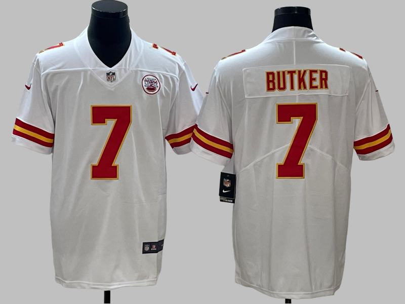 Men's Kansas City Chiefs #7 Harrison Butker Stitched Limited NFL Jersey White