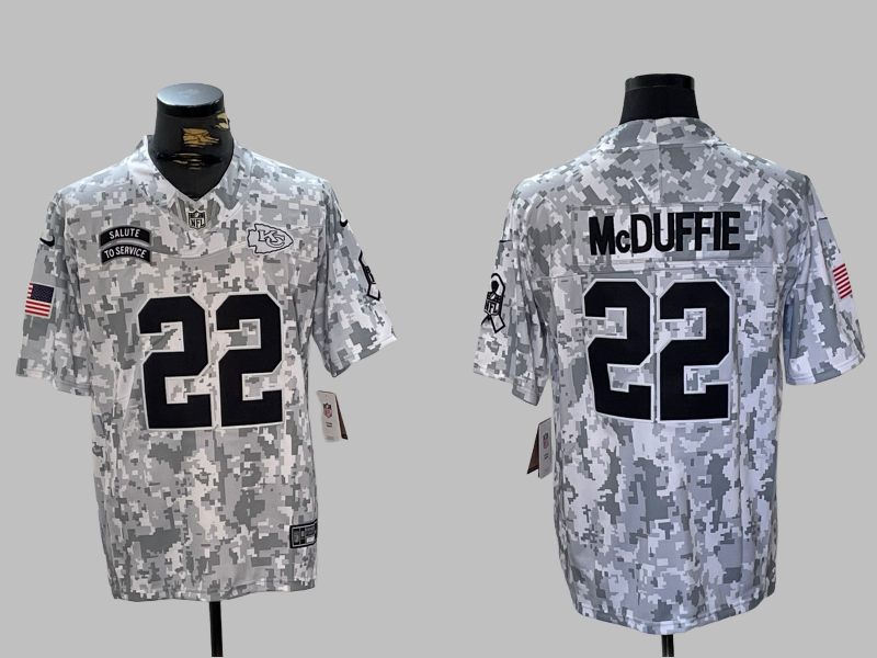 Men's Kansas City Chiefs #22 Trent McDuffie Stitched Camo Salute To Service Limited NFL Jersey