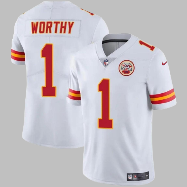 Men's Kansas City Chiefs #1 Xavier Worthy Vapor Limited NFL Stitched Jersey White