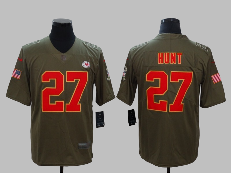Men's Kansas City Chiefs #27 Kareem Hunt Stitched Limited NFL Jersey Olive