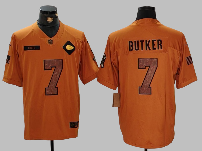 Men's Kansas City Chiefs #7 Harrison Butker Stitched Brown Salute To Service Limited NFL Jersey