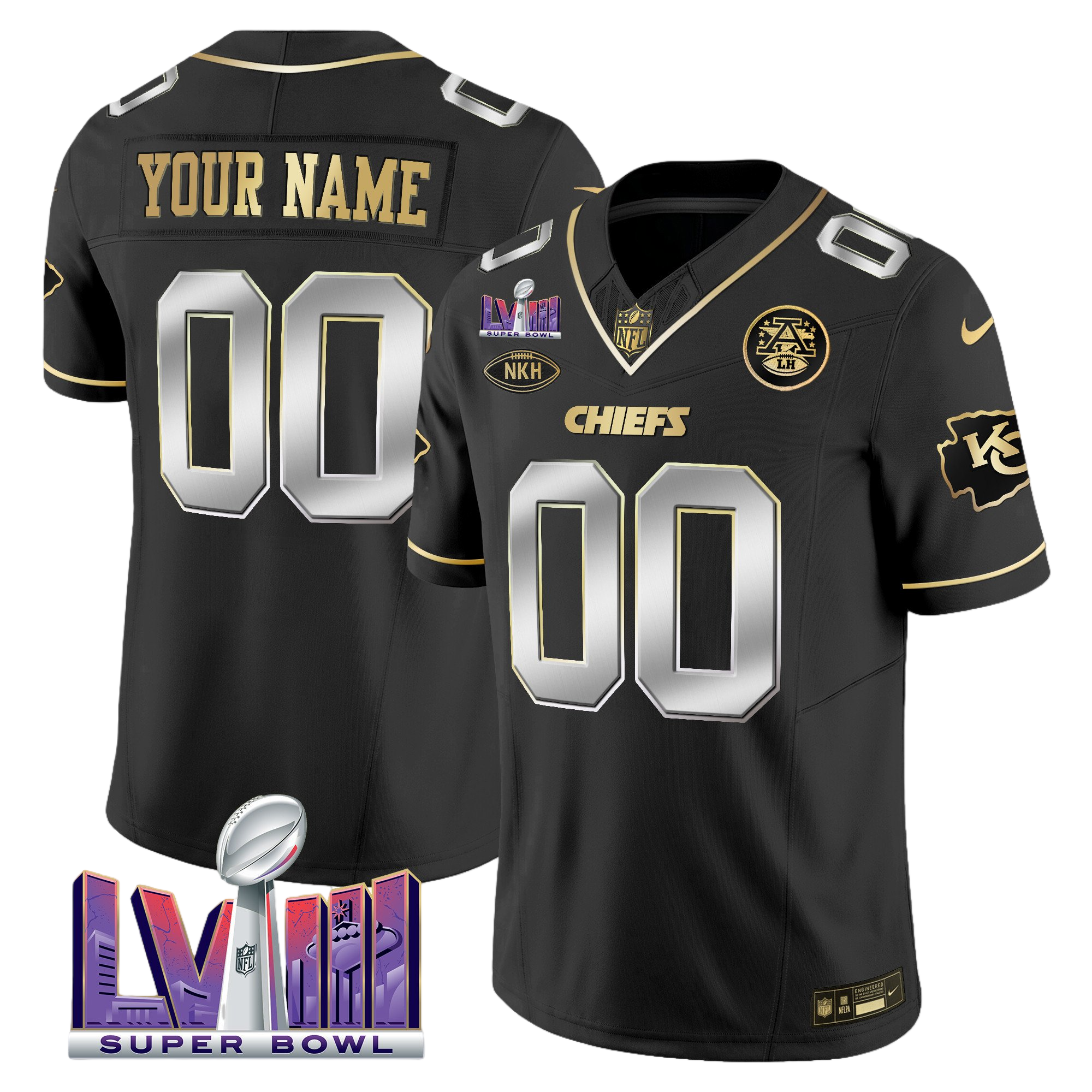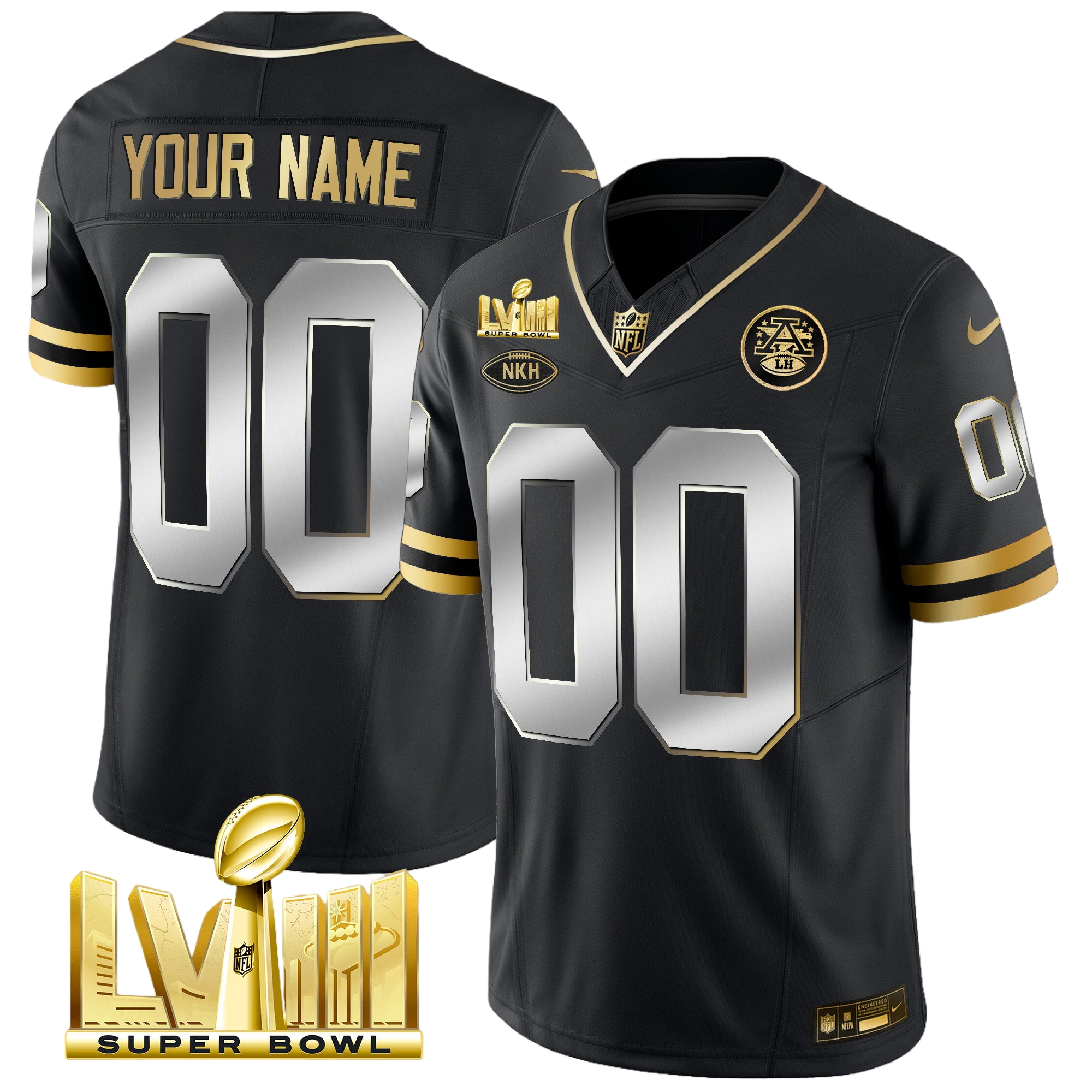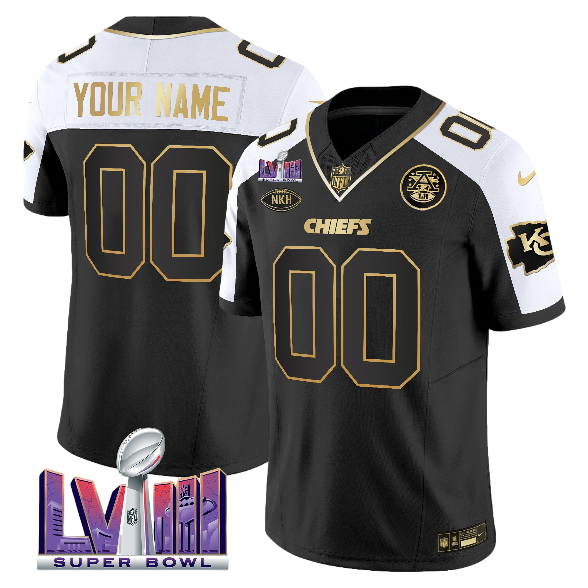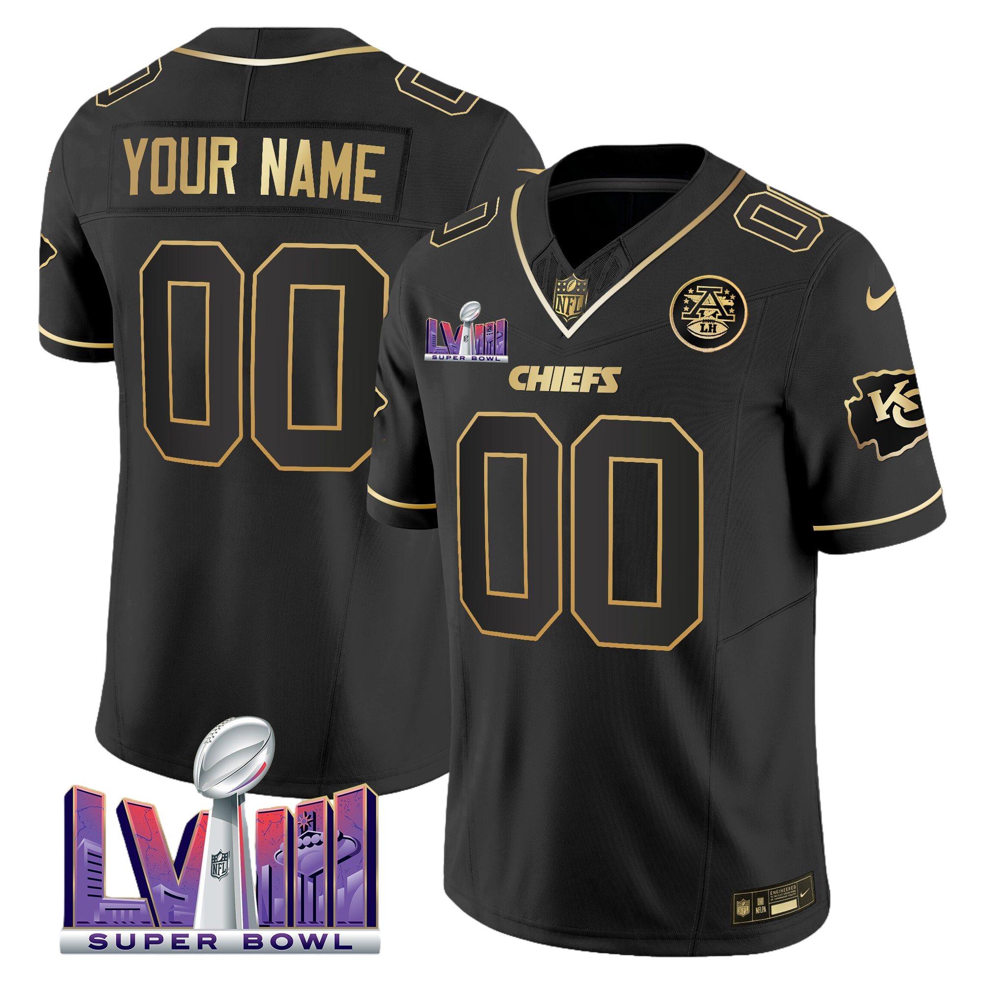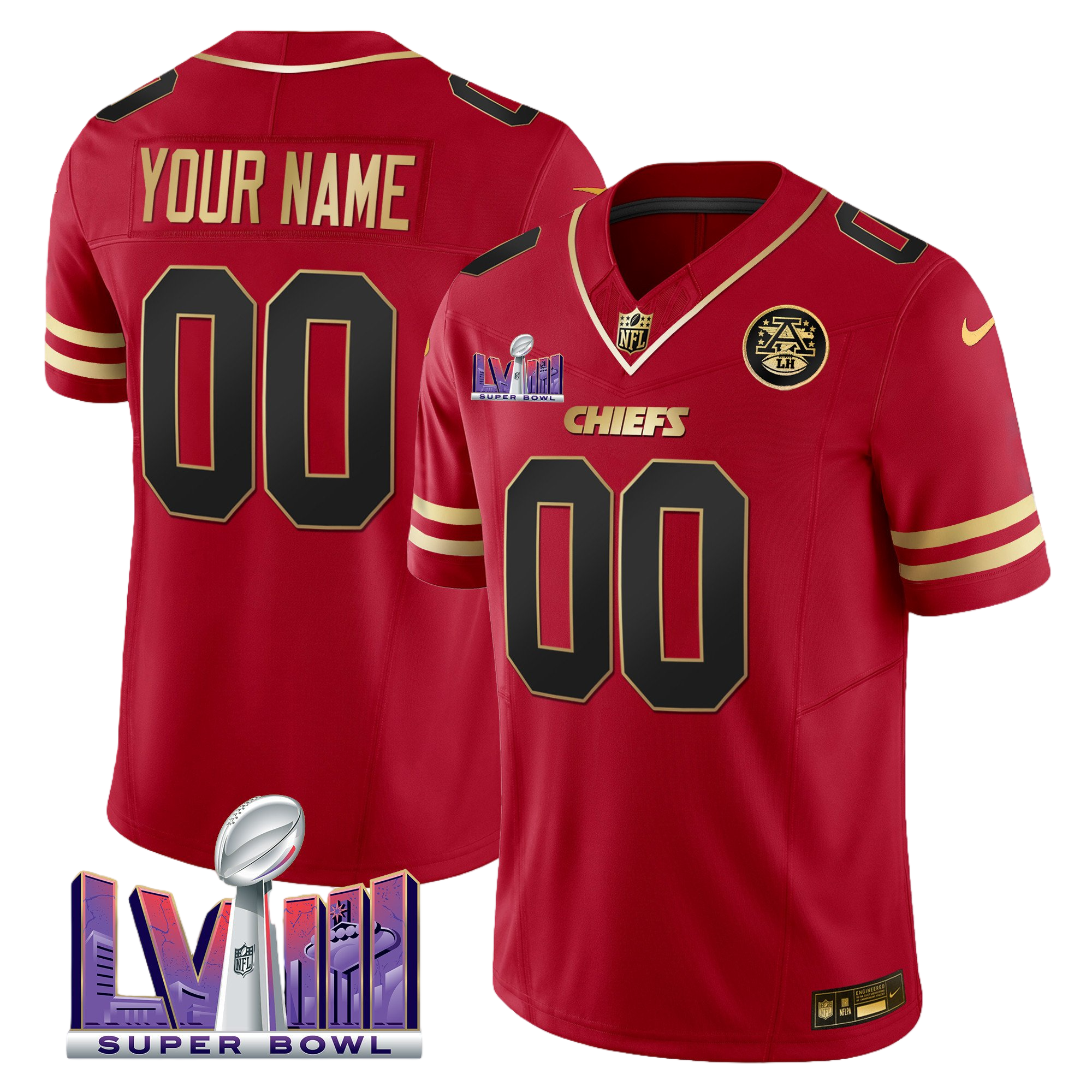 Kansas City Chiefs Super Bowl LVIII Gold Patch Vapor Custom Jersey V3 – All Stitched 6