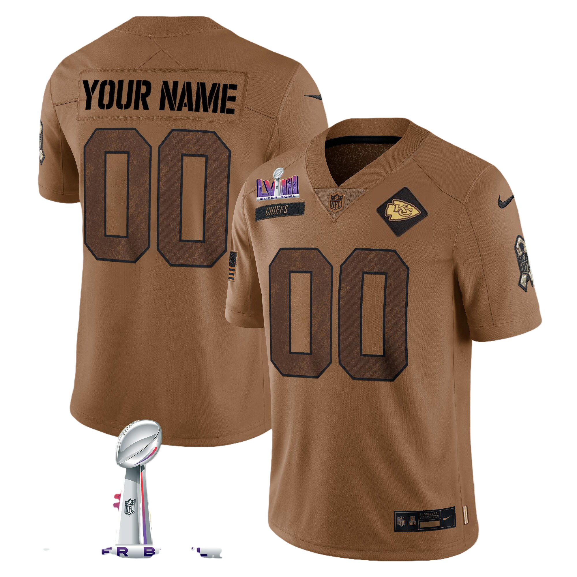 Kansas City Chiefs Super Bowl LVIII Patch Salute To Service Brown Limited Custom Jersey – All Stitched