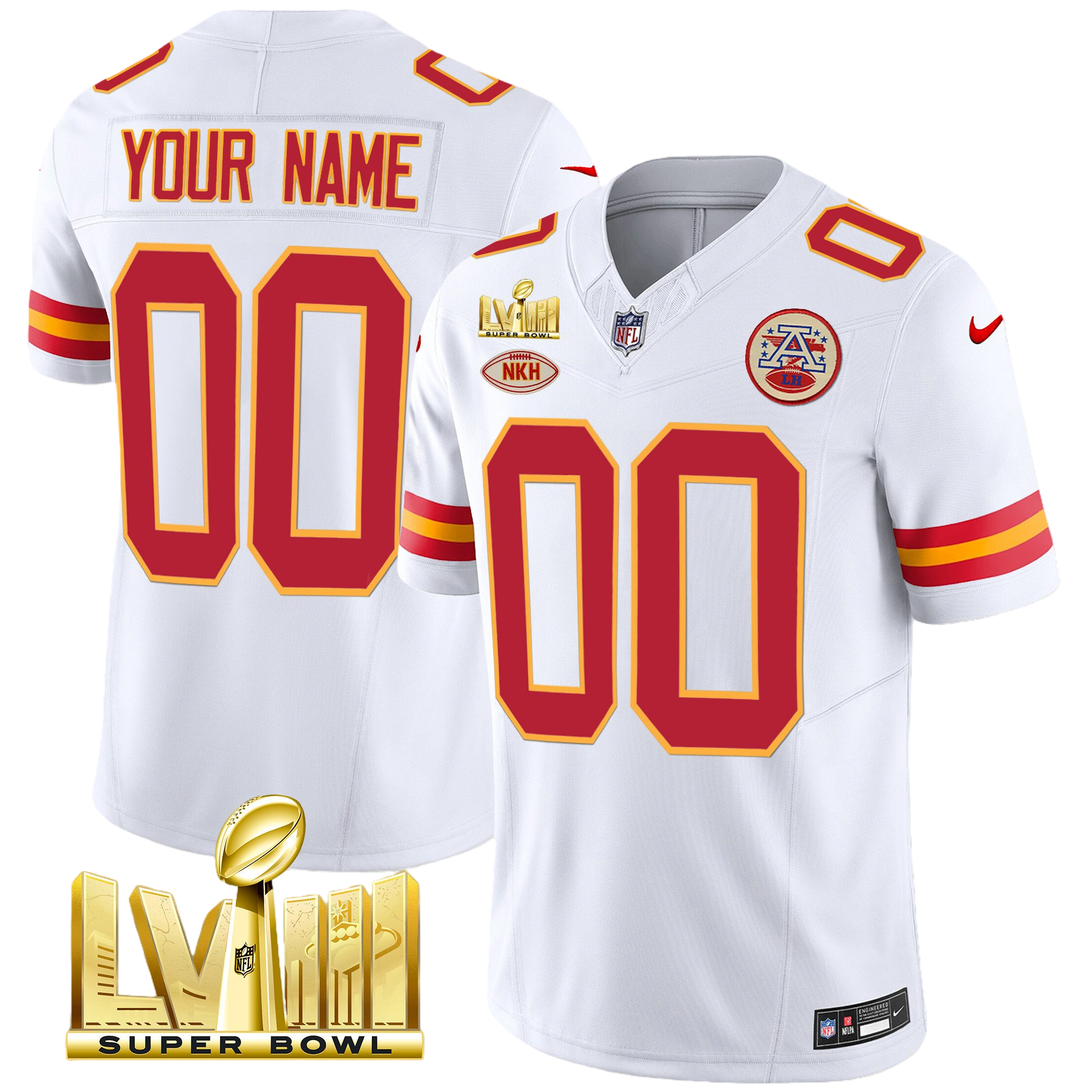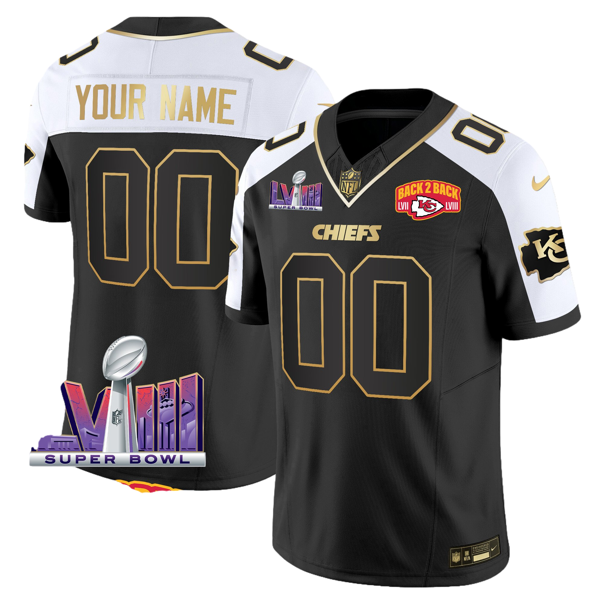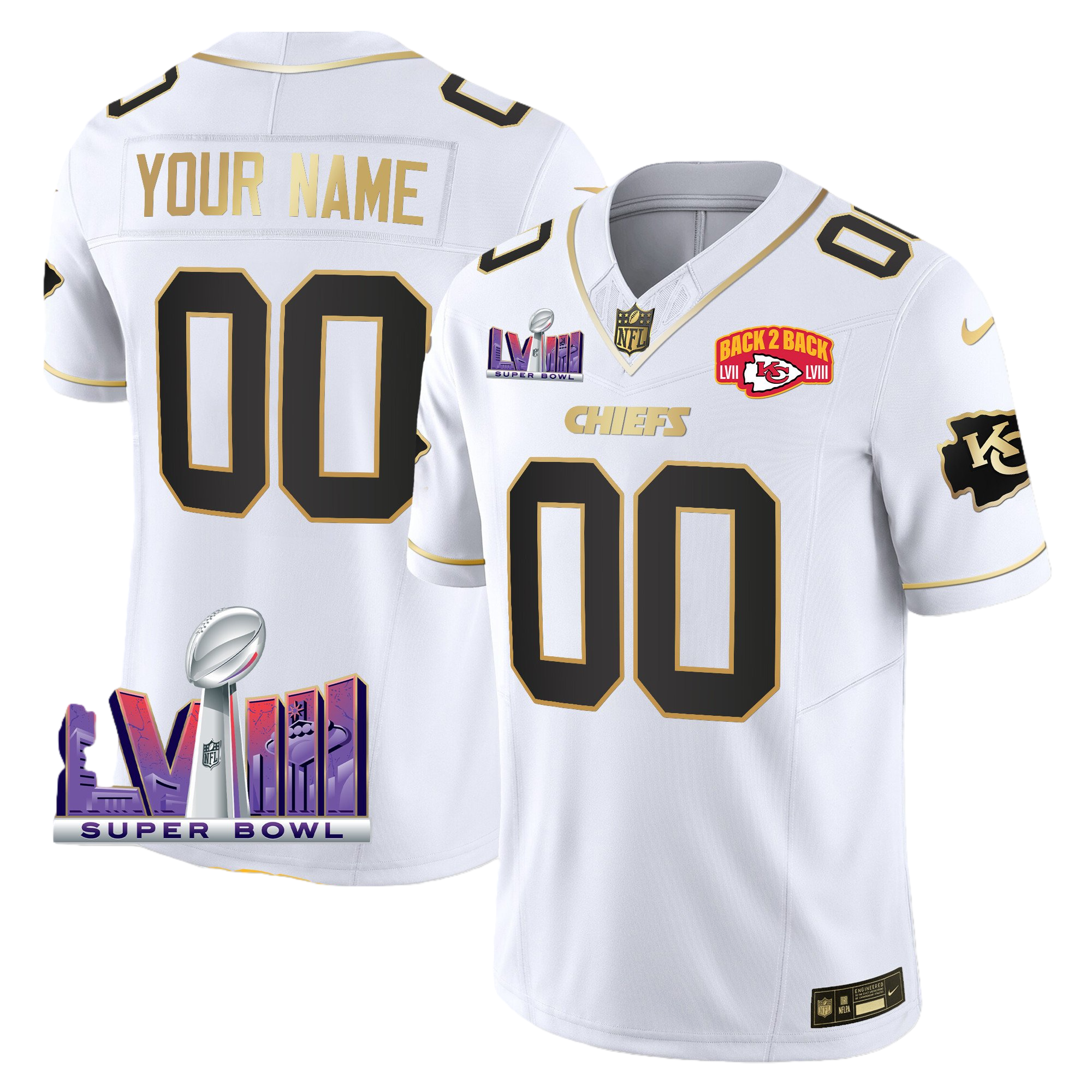 Kansas City Chiefs Super Bowl LVIII & Back 2 Back Patch Vapor Custom Jersey – All Stitched 4