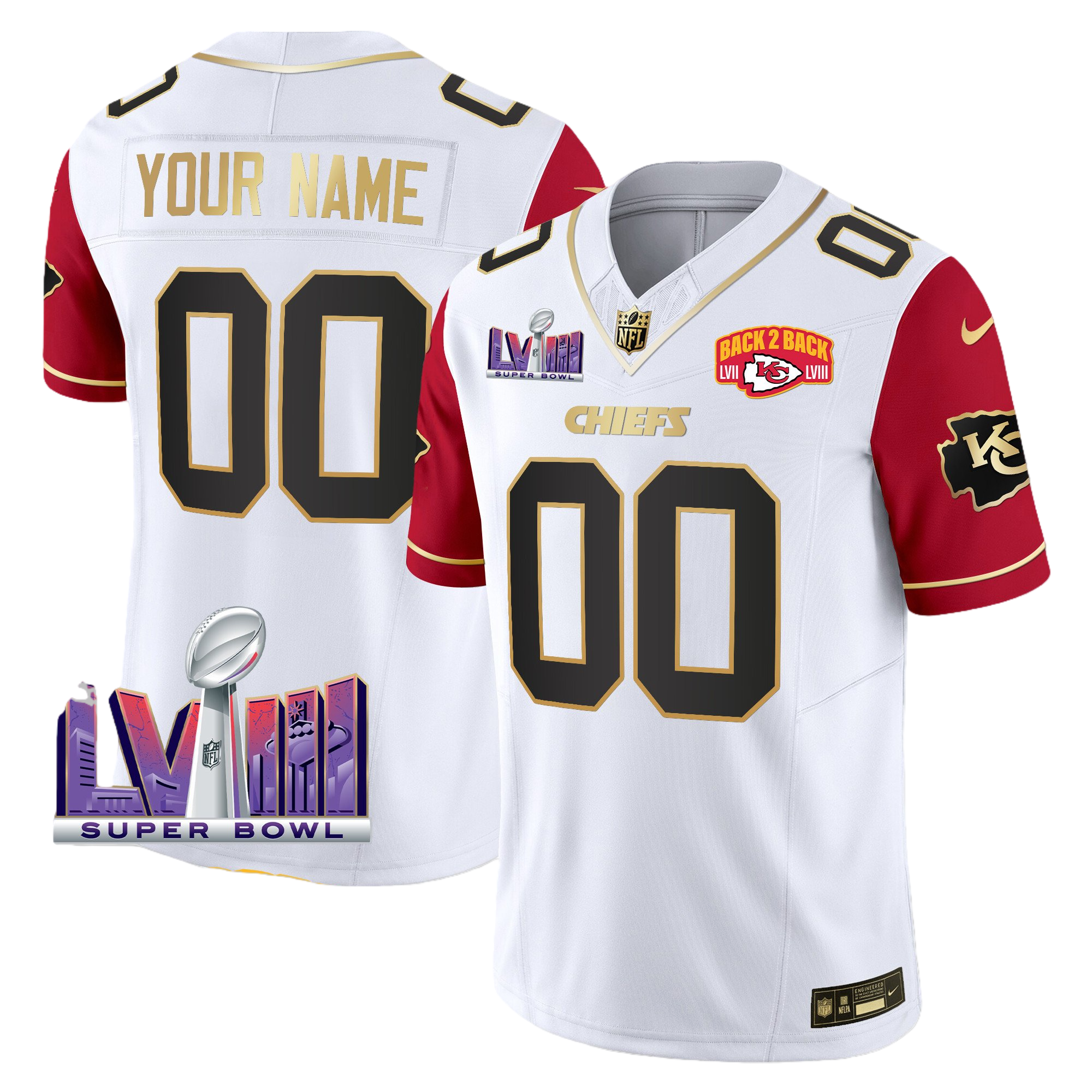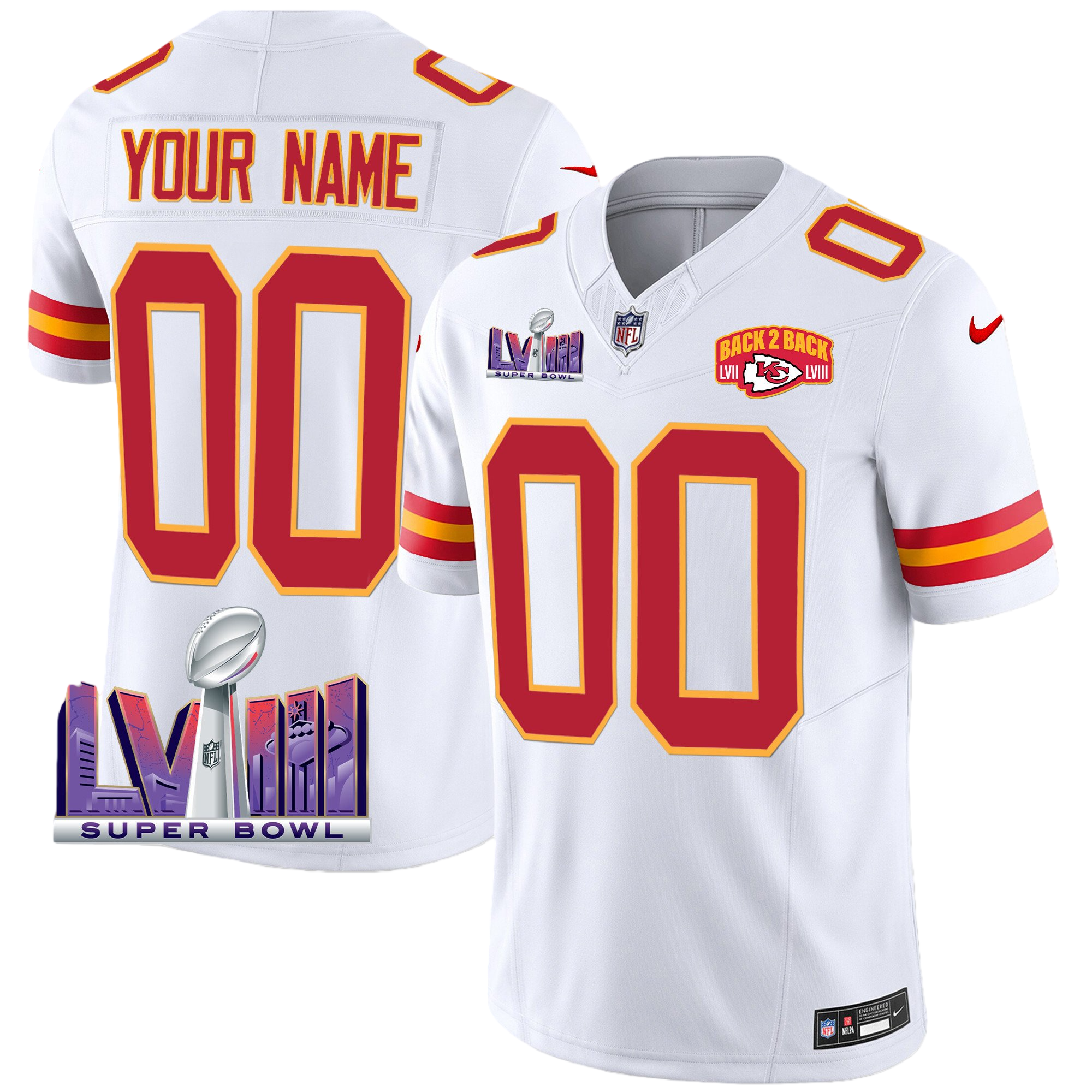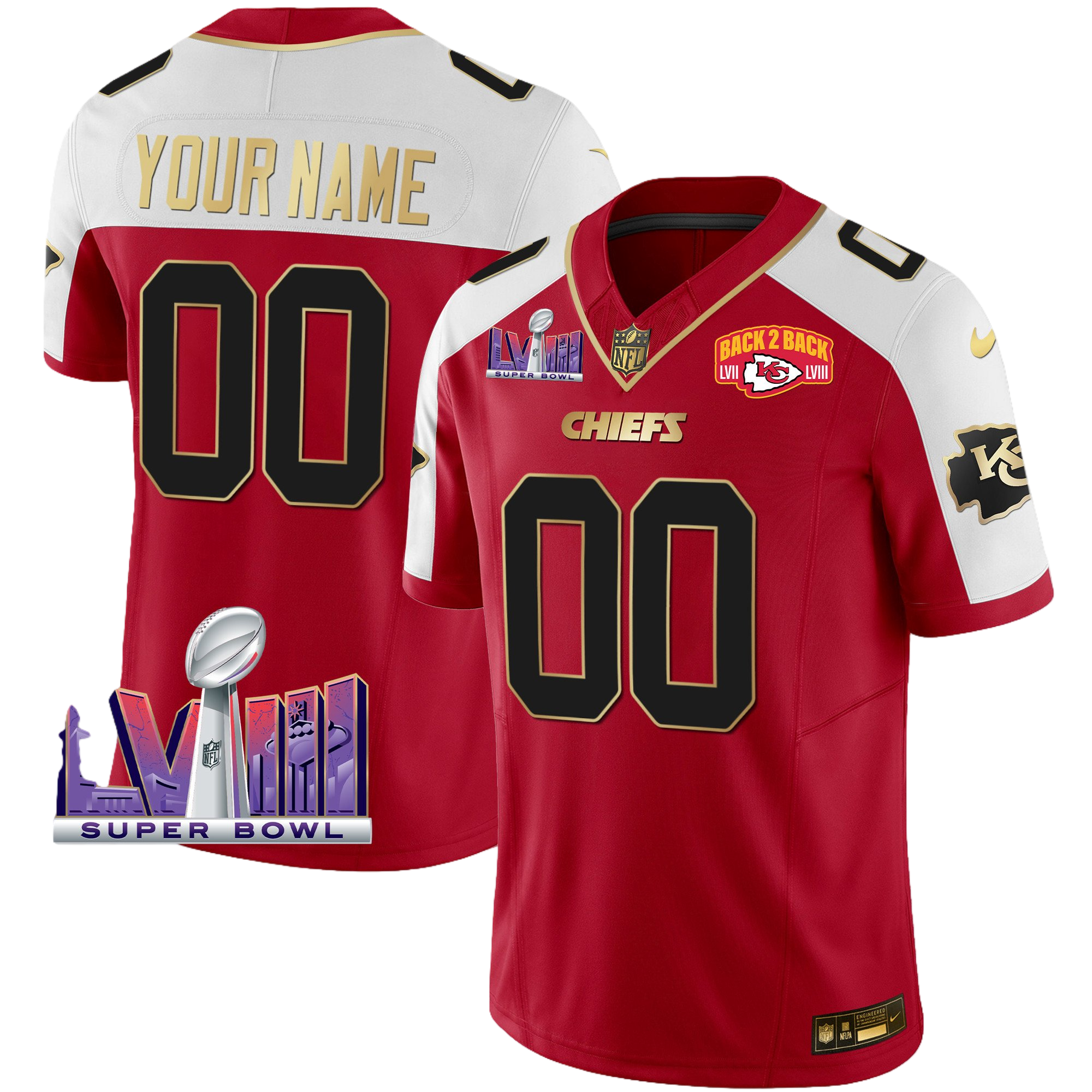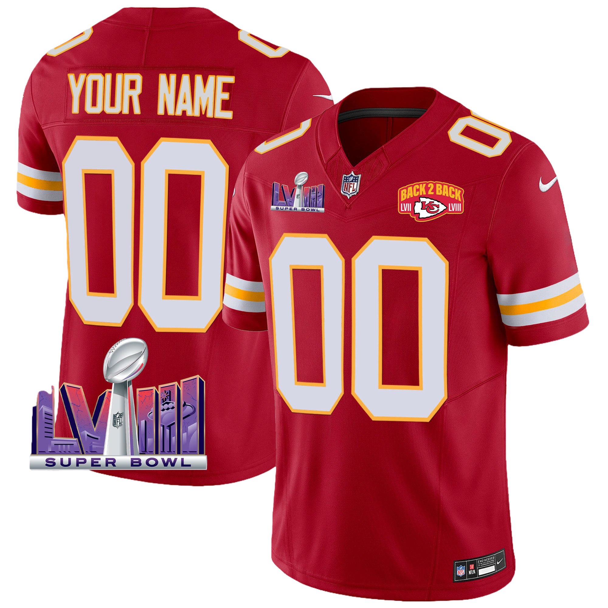 Kansas City Chiefs Super Bowl LVIII & Back 2 Back Patch Vapor Custom Jersey V2 – All Stitched 2