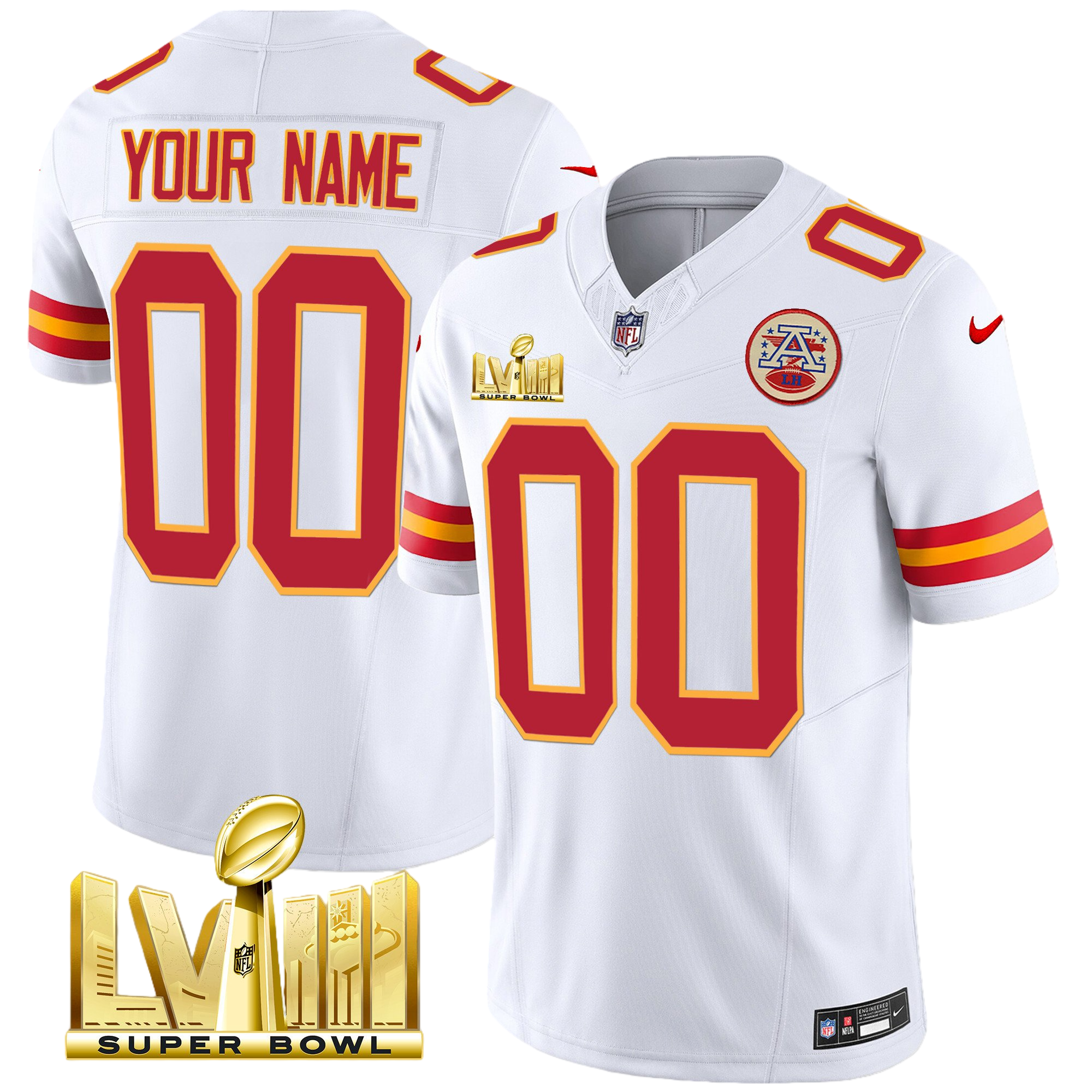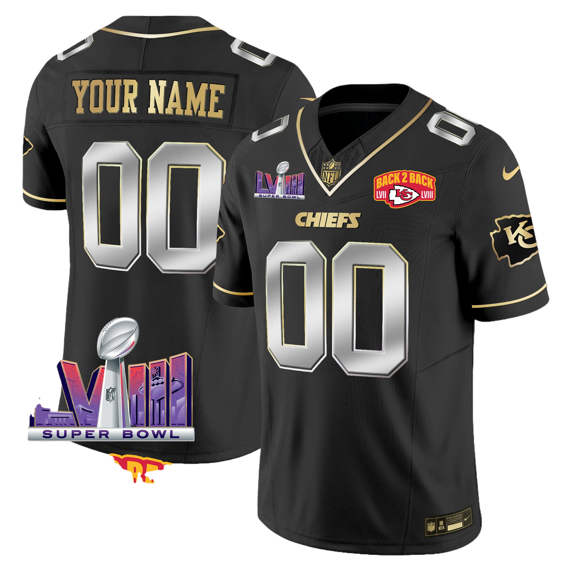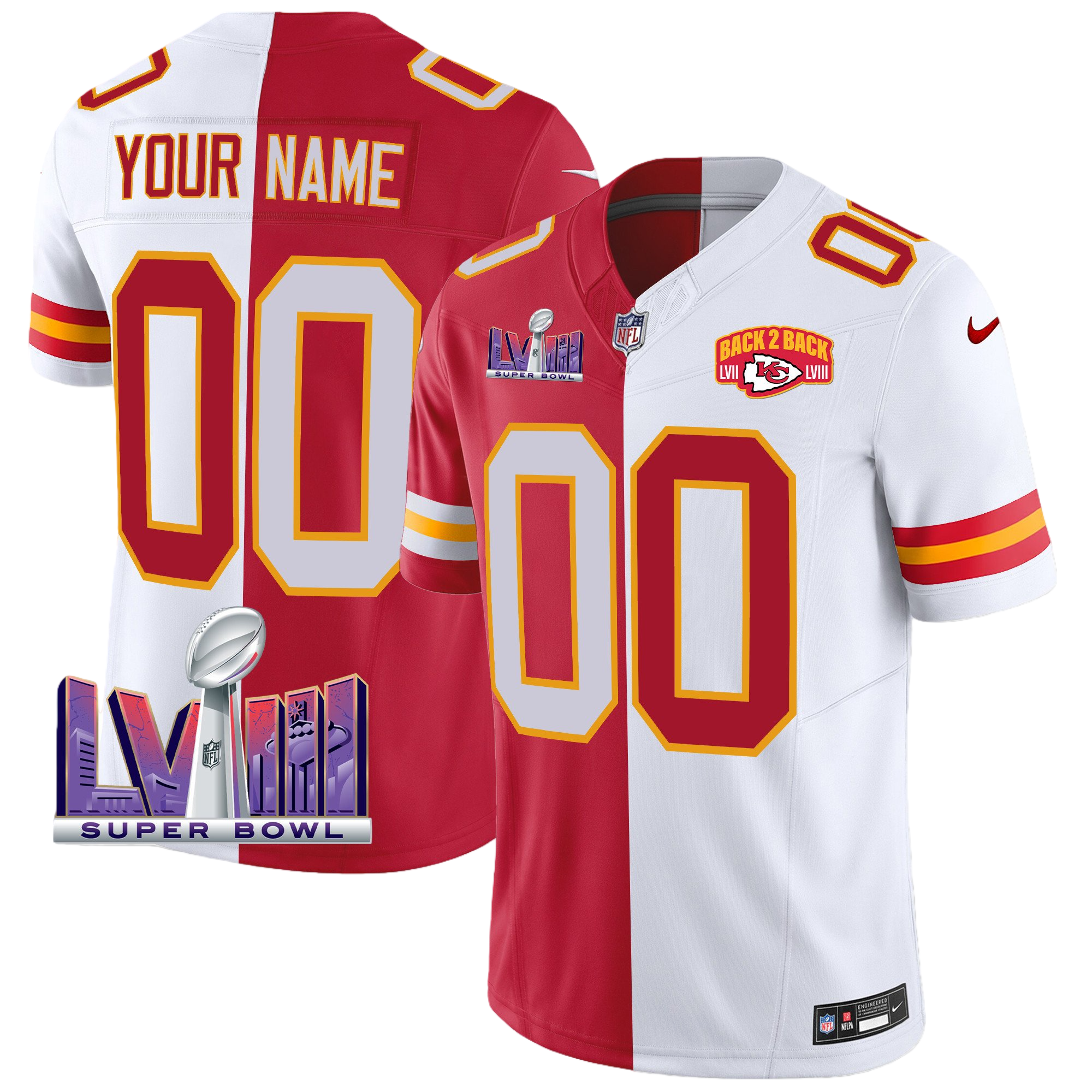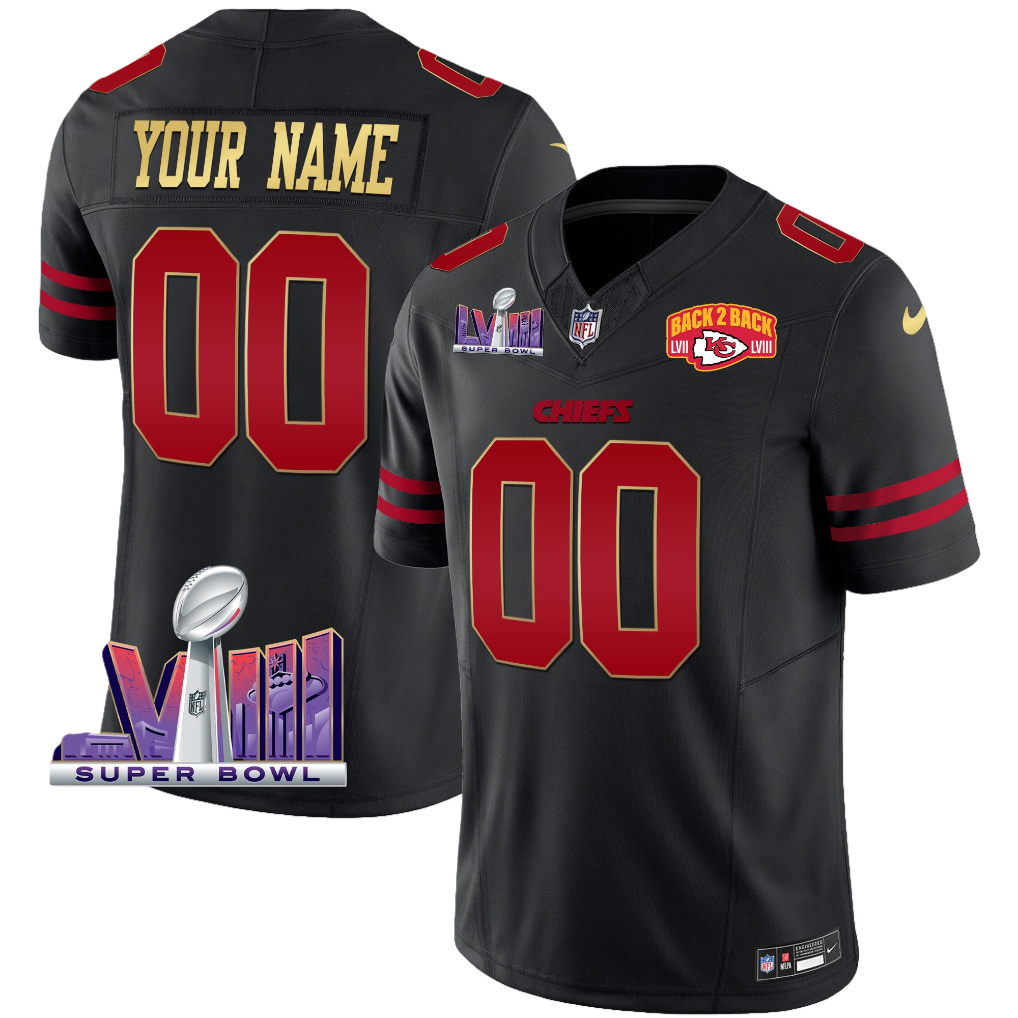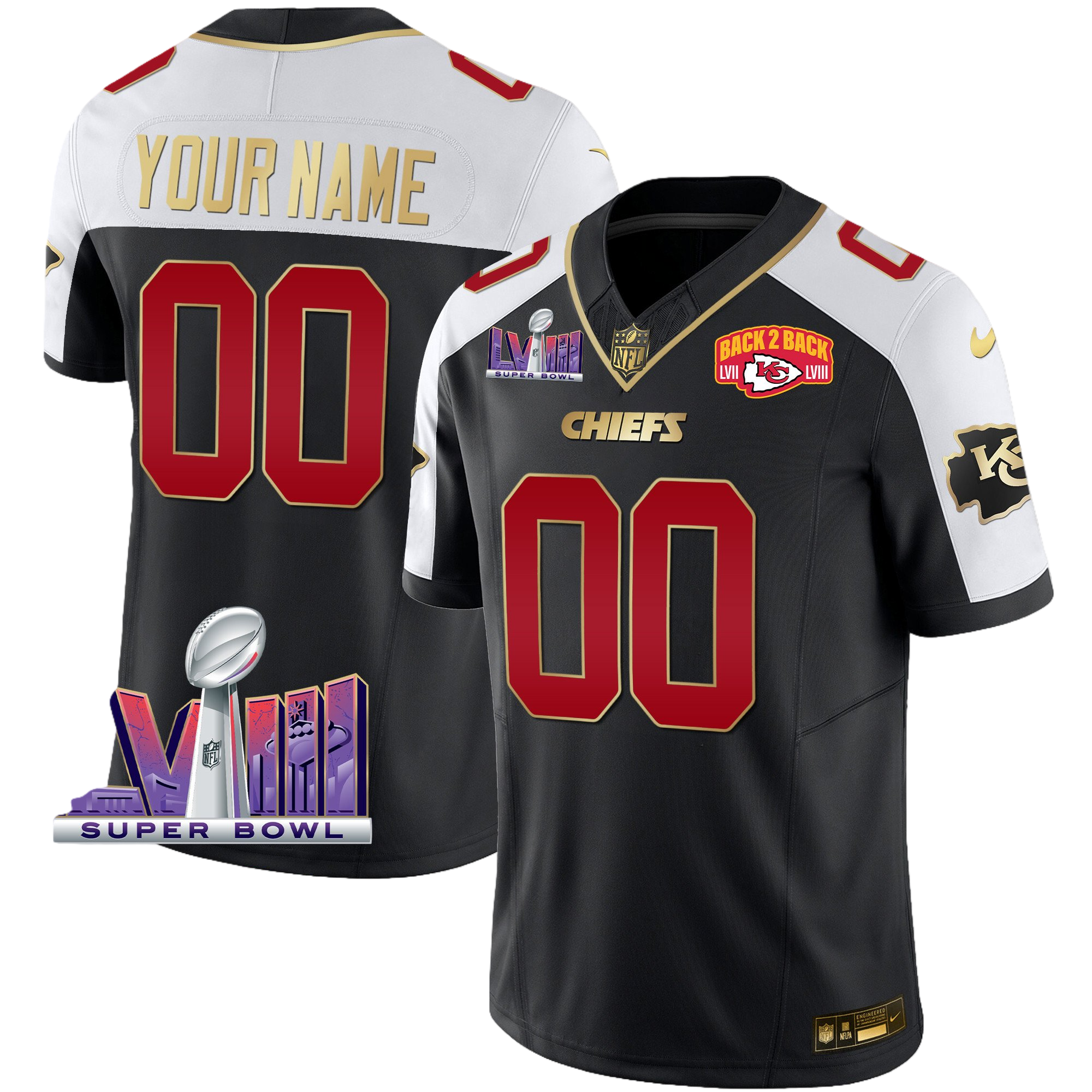 Kansas City Chiefs Super Bowl LVIII & Back 2 Back Patch Vapor Custom Jersey V2 – All Stitched 2