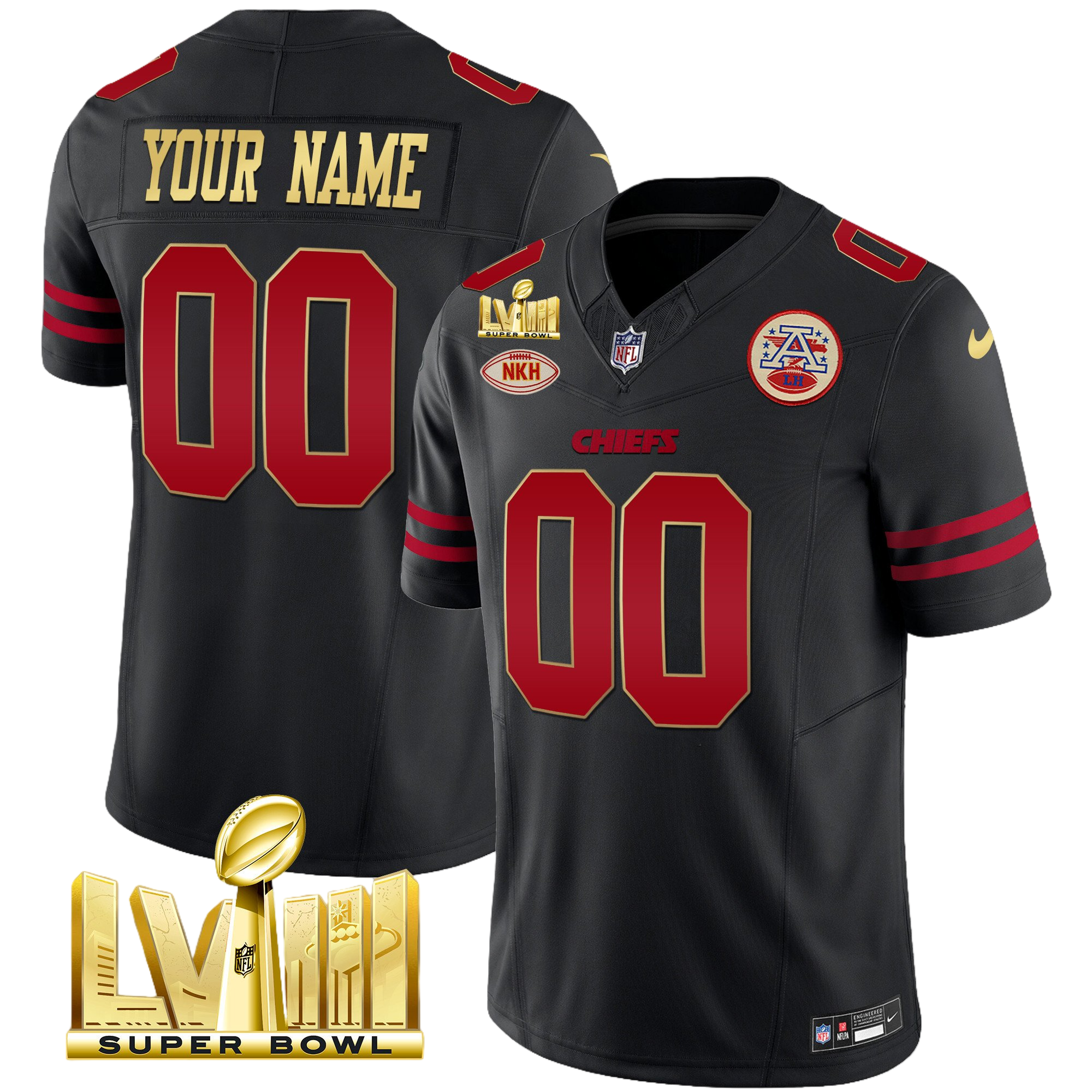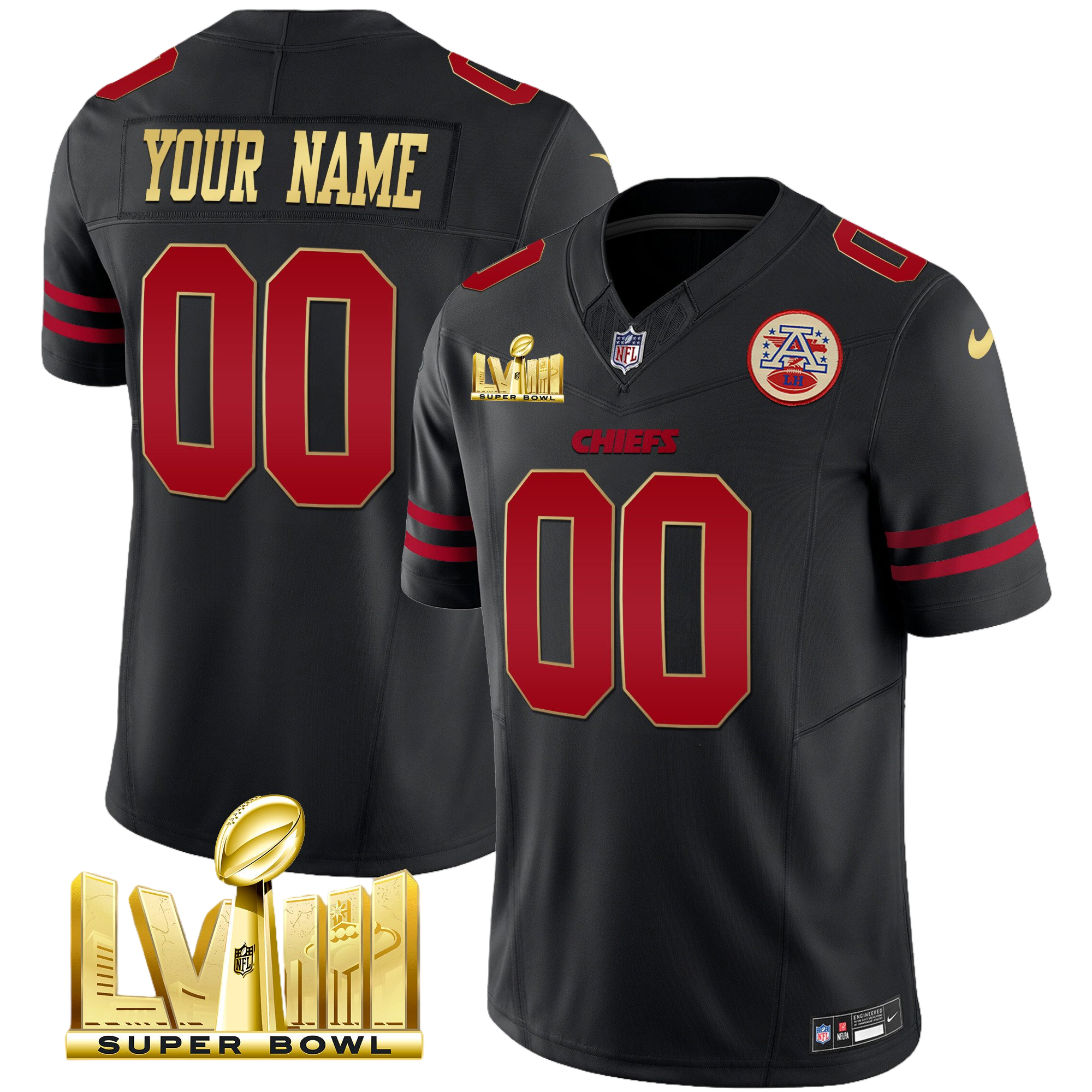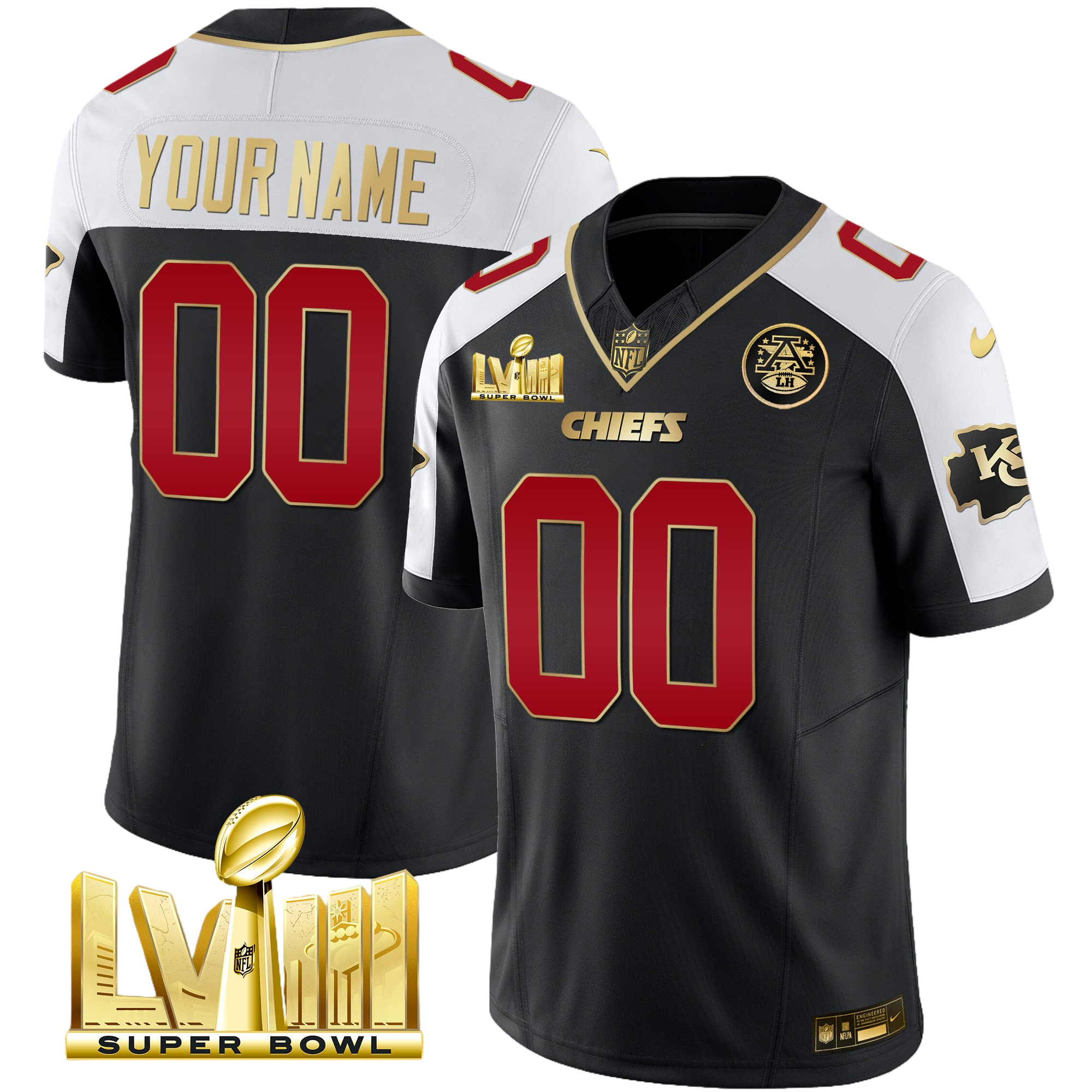 Kansas City Chiefs Super Bowl LVIII & Back 2 Back Gold Patch Vapor Custom Jersey V5 – All Stitched 2