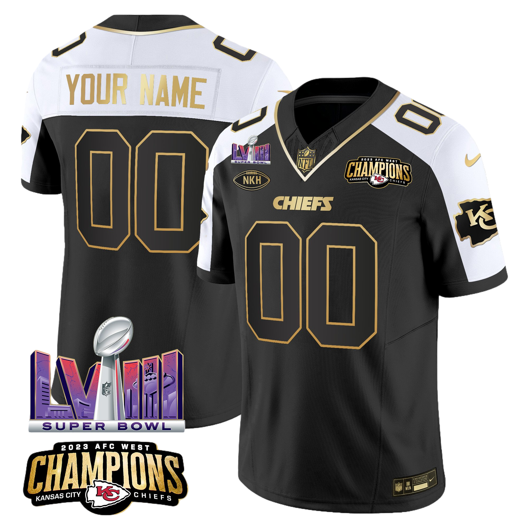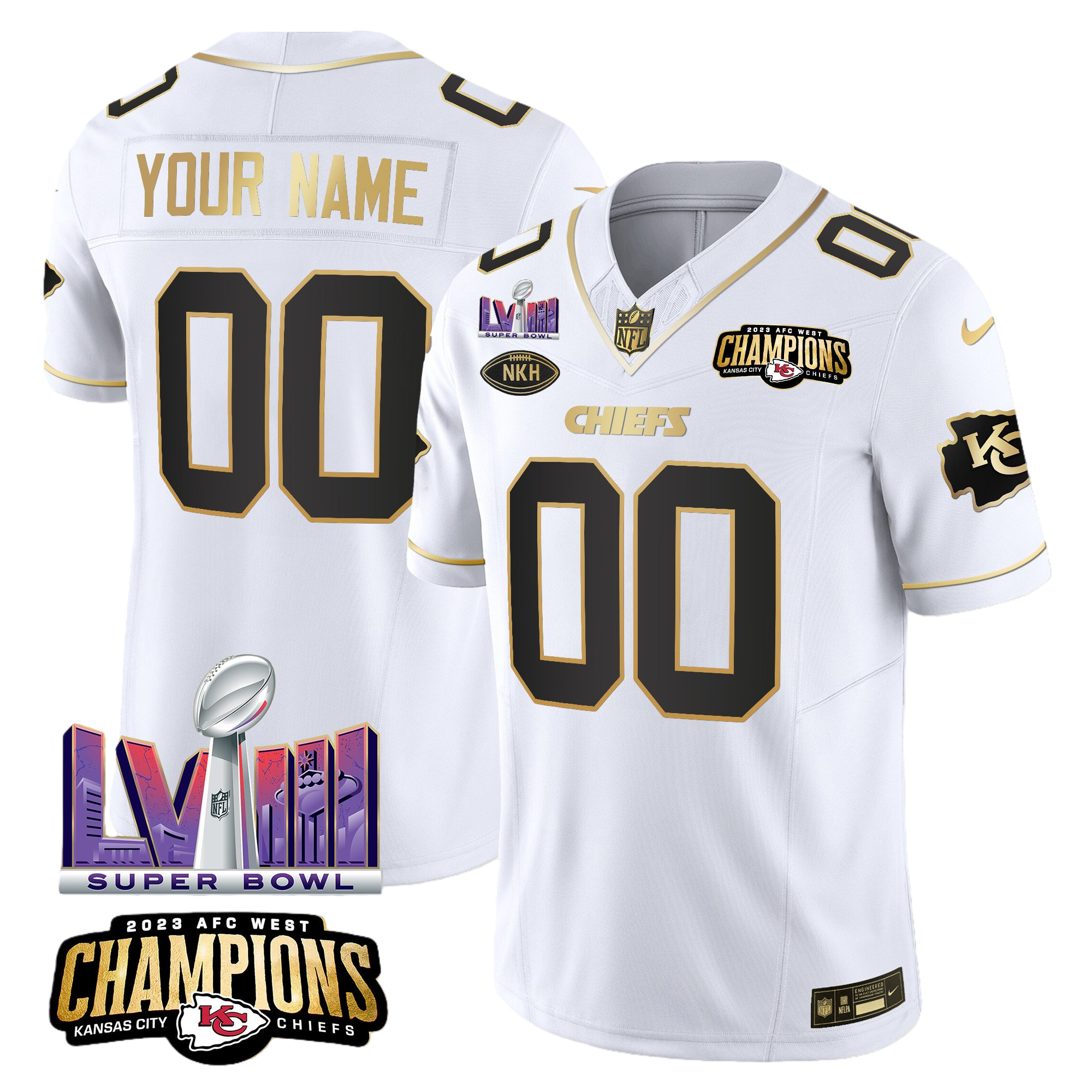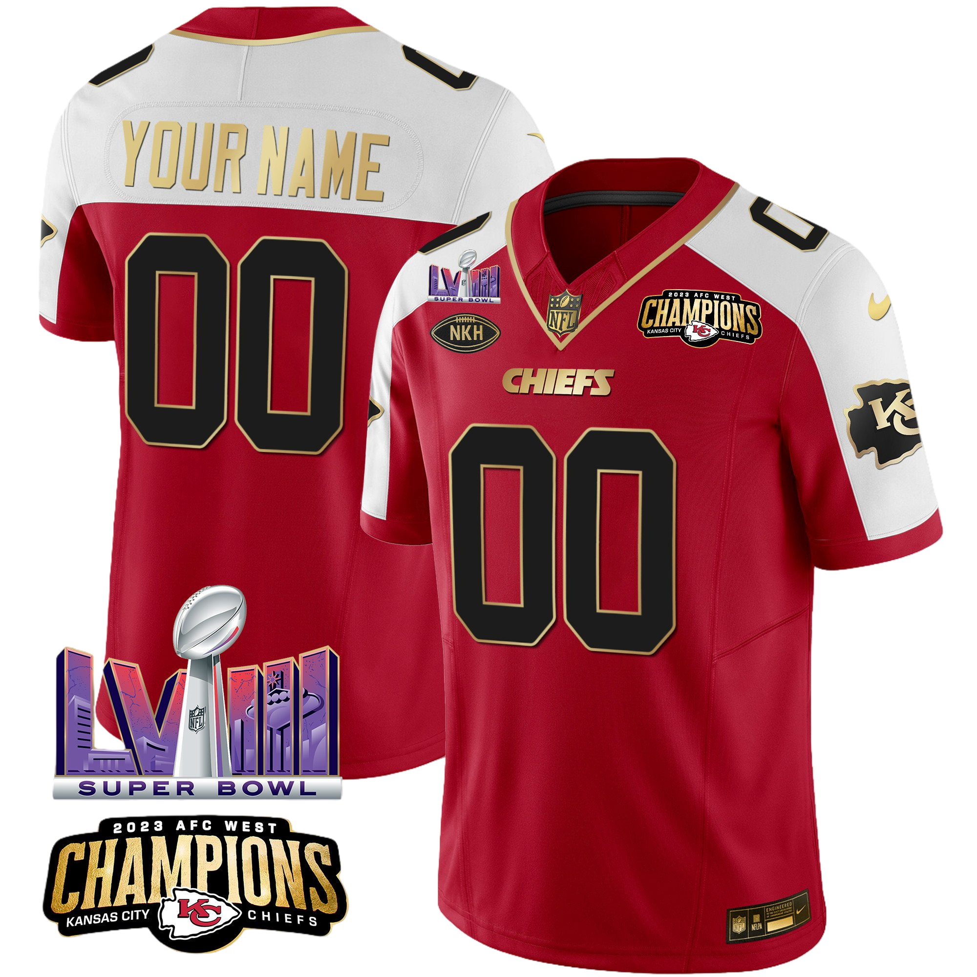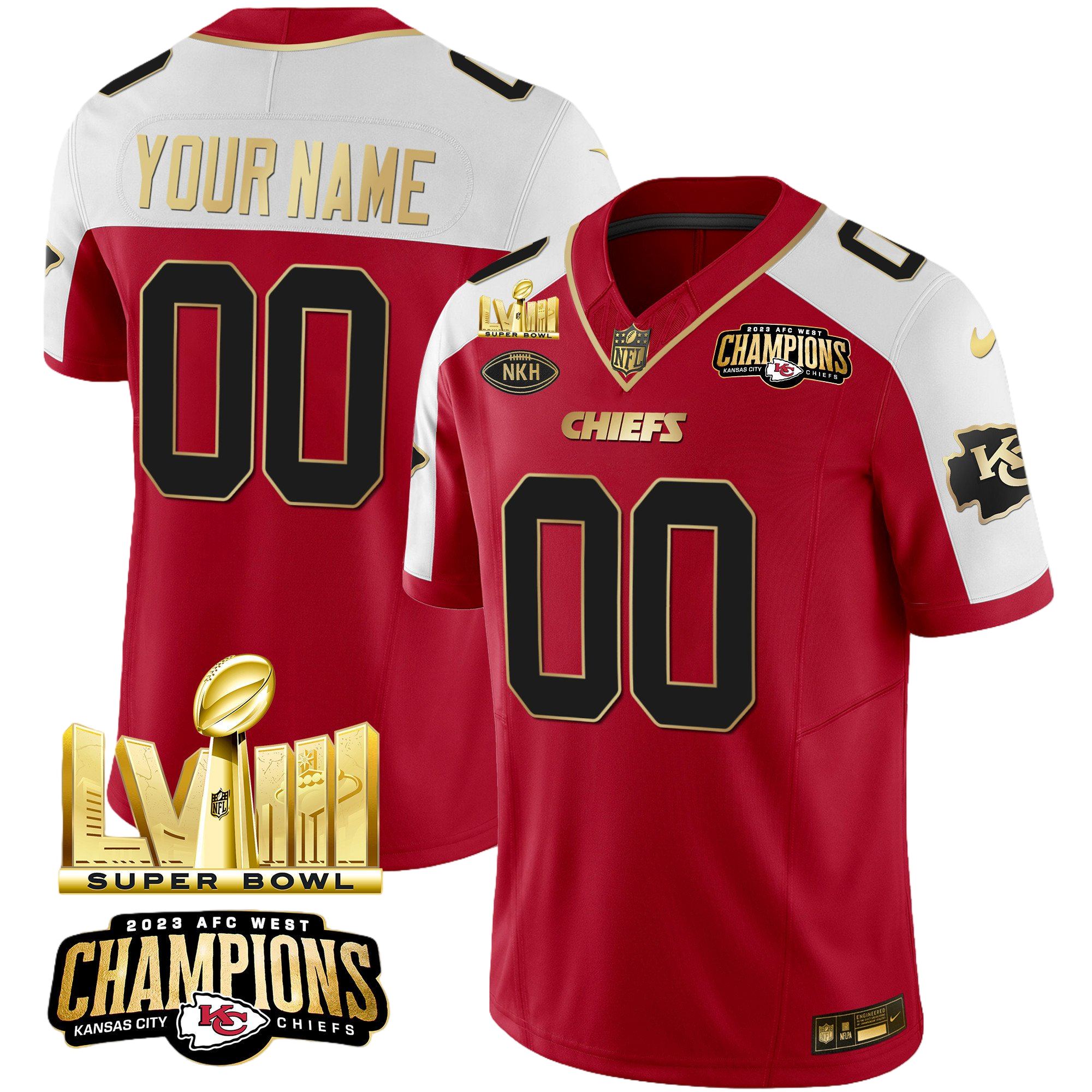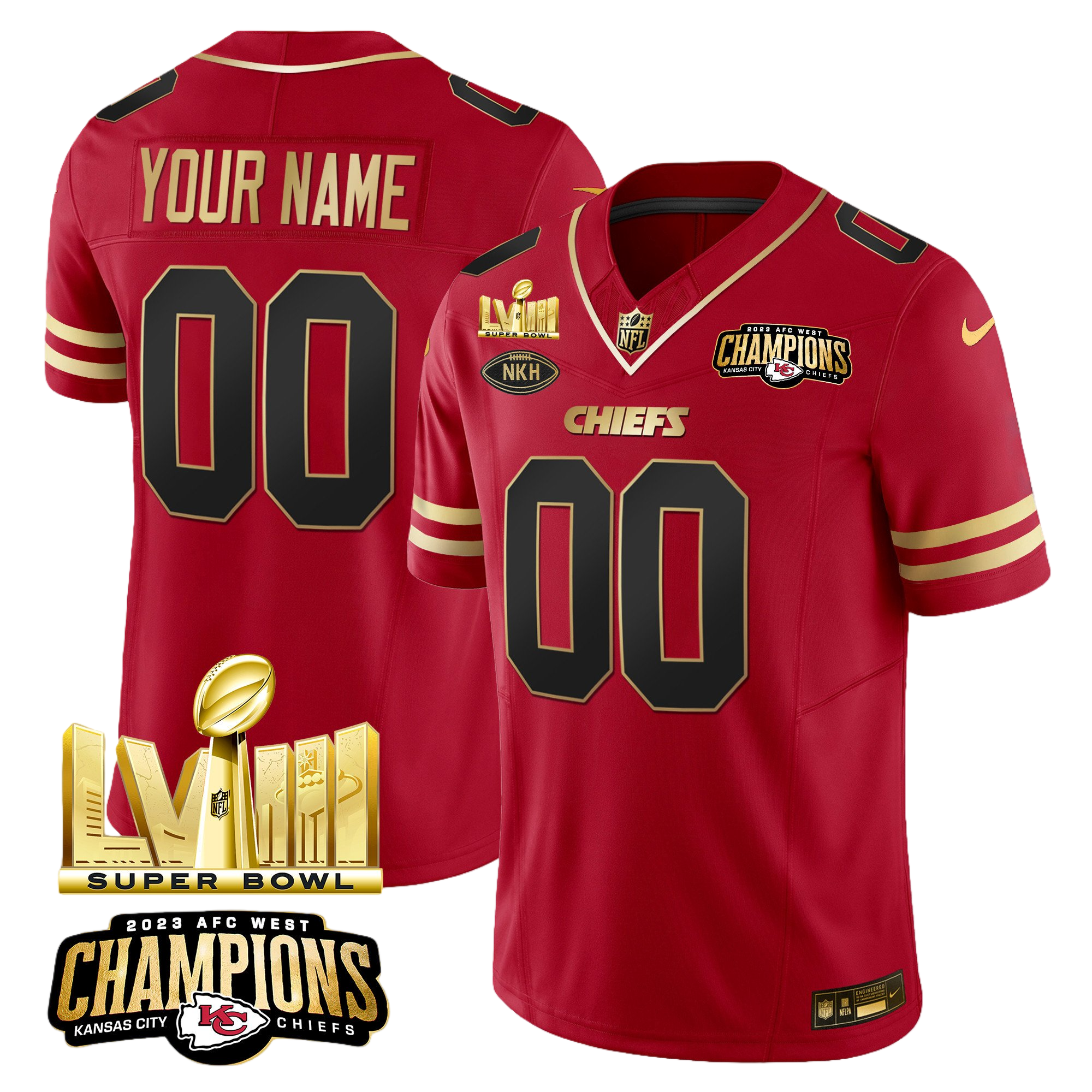 Kansas City Chiefs AFC West Champions & Super Bowl LVIII Gold Patch Vapor Custom Jersey – All Stitched 1