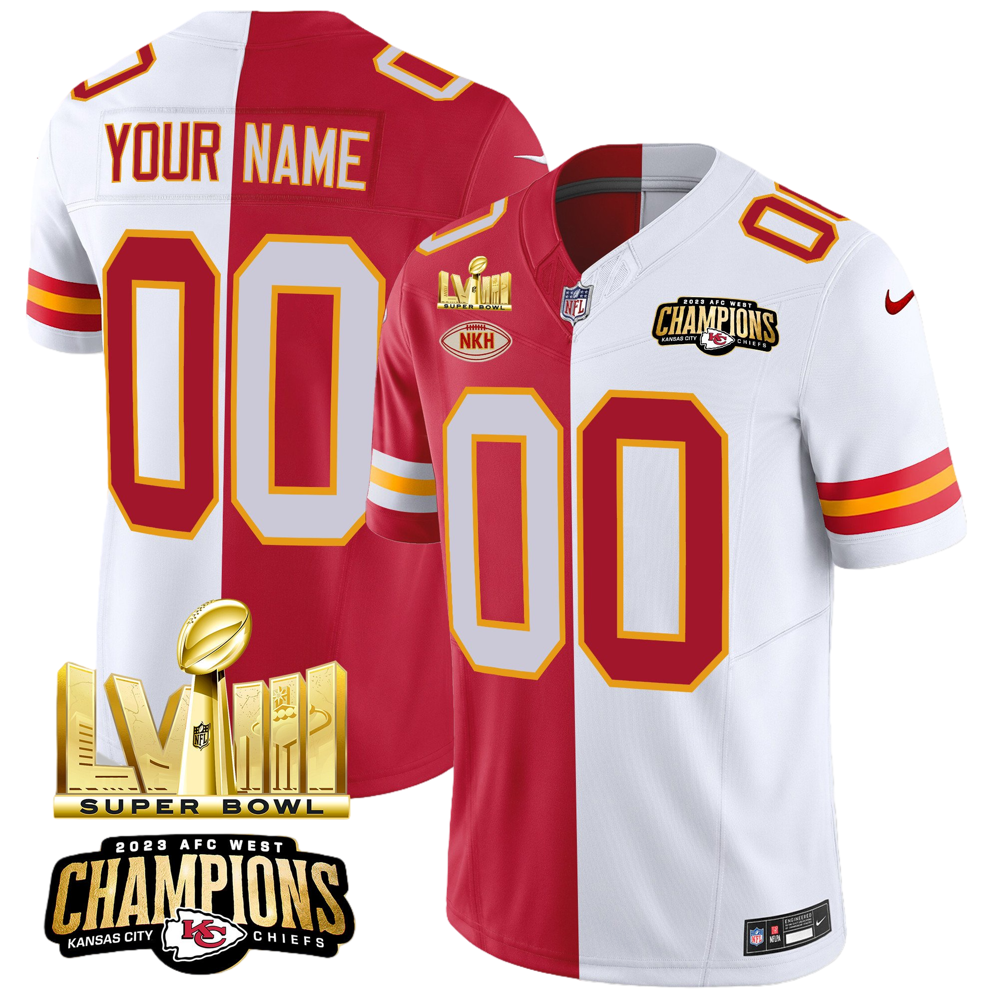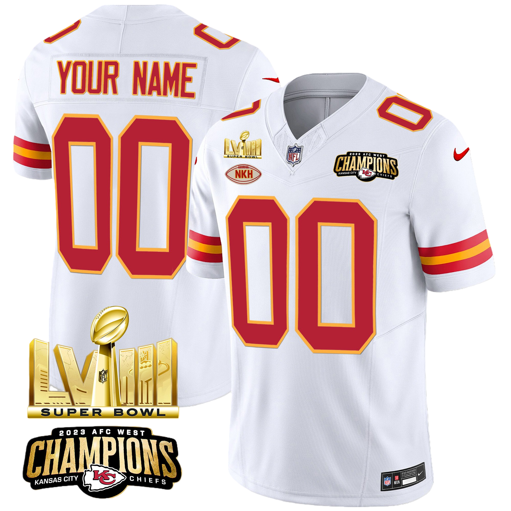 Kansas City Chiefs AFC West Champions & Super Bowl LVIII Patch Vapor Custom Jersey – All Stitched 1