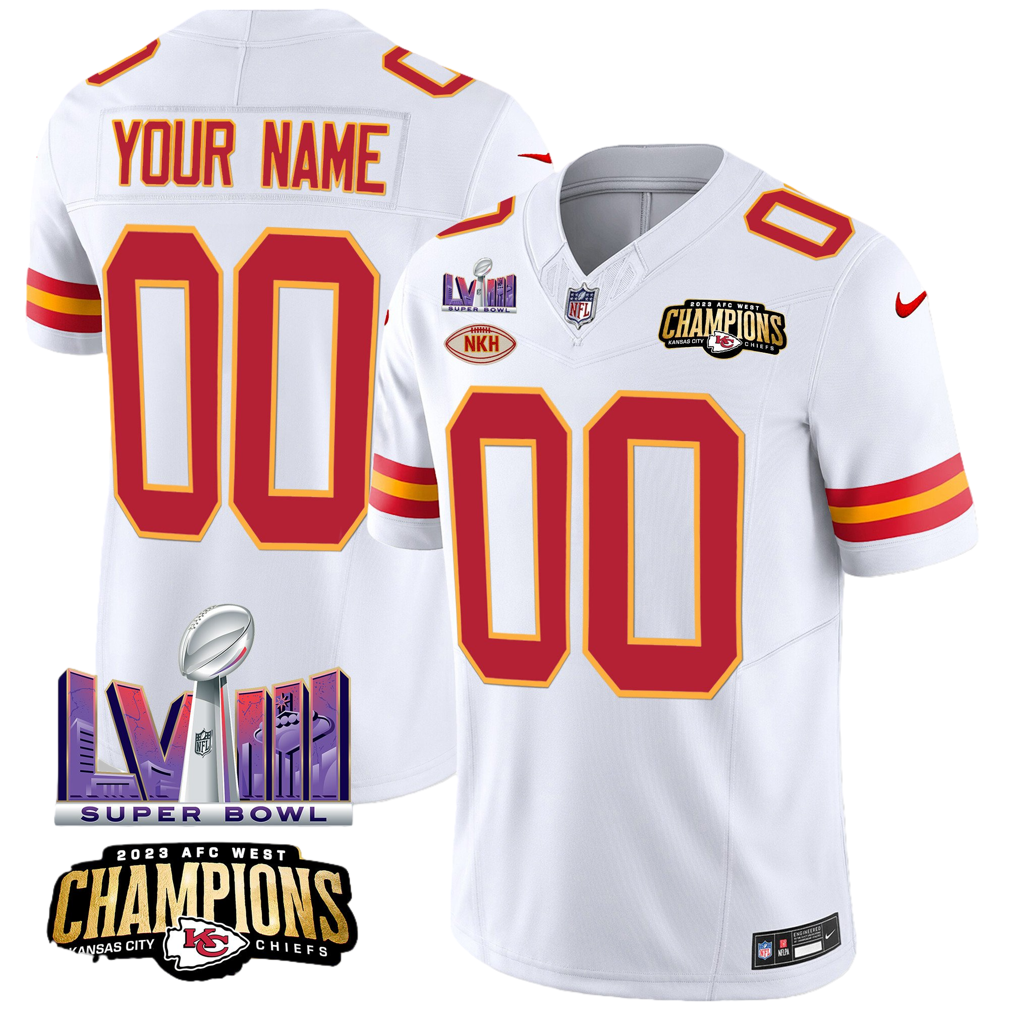 Kansas City Chiefs AFC West Champions & Super Bowl LVIII Patch Vapor Custom Jersey – All Stitched 6