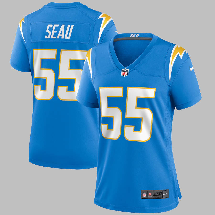 Women's Los Angeles Chargers #55 Junior Seau All Stitched NFL Powder Blue Jersey