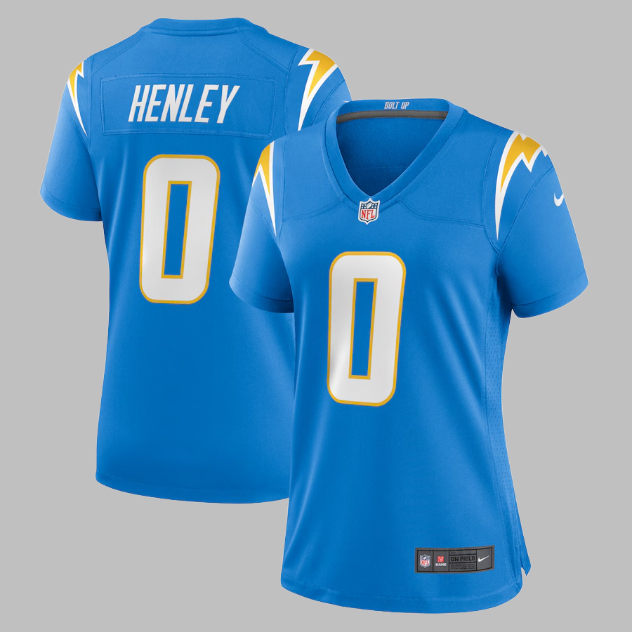 Women's Los Angeles Chargers #0 Daiyan Henley All Stitched NFL Powder Blue Jersey