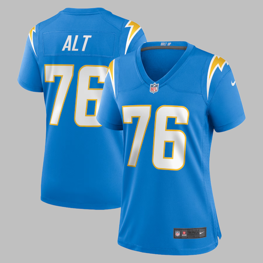 Women's Los Angeles Chargers #76 Joe Alt All Stitched NFL Powder Blue Jersey