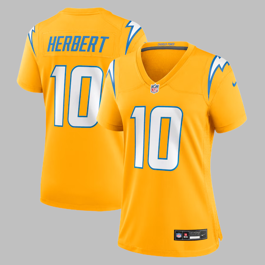 Women's Los Angeles Chargers #10 Justin Herbert All Stitched NFL Gold Alternate Charger Power Jersey