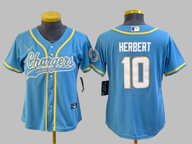 Women's Los Angeles Chargers #10 Justin Herbert All Stitched NFL x MLB Jersey LAC0002