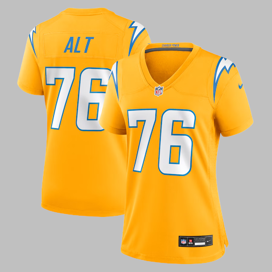 Women's Los Angeles Chargers #76 Joe Alt All Stitched NFL Gold Alternate Charger Power Jersey