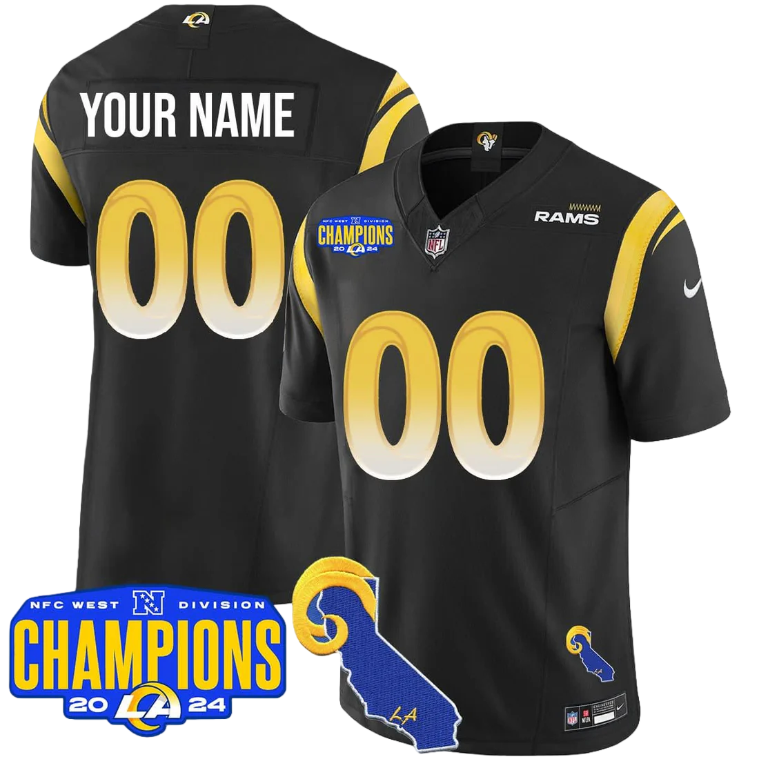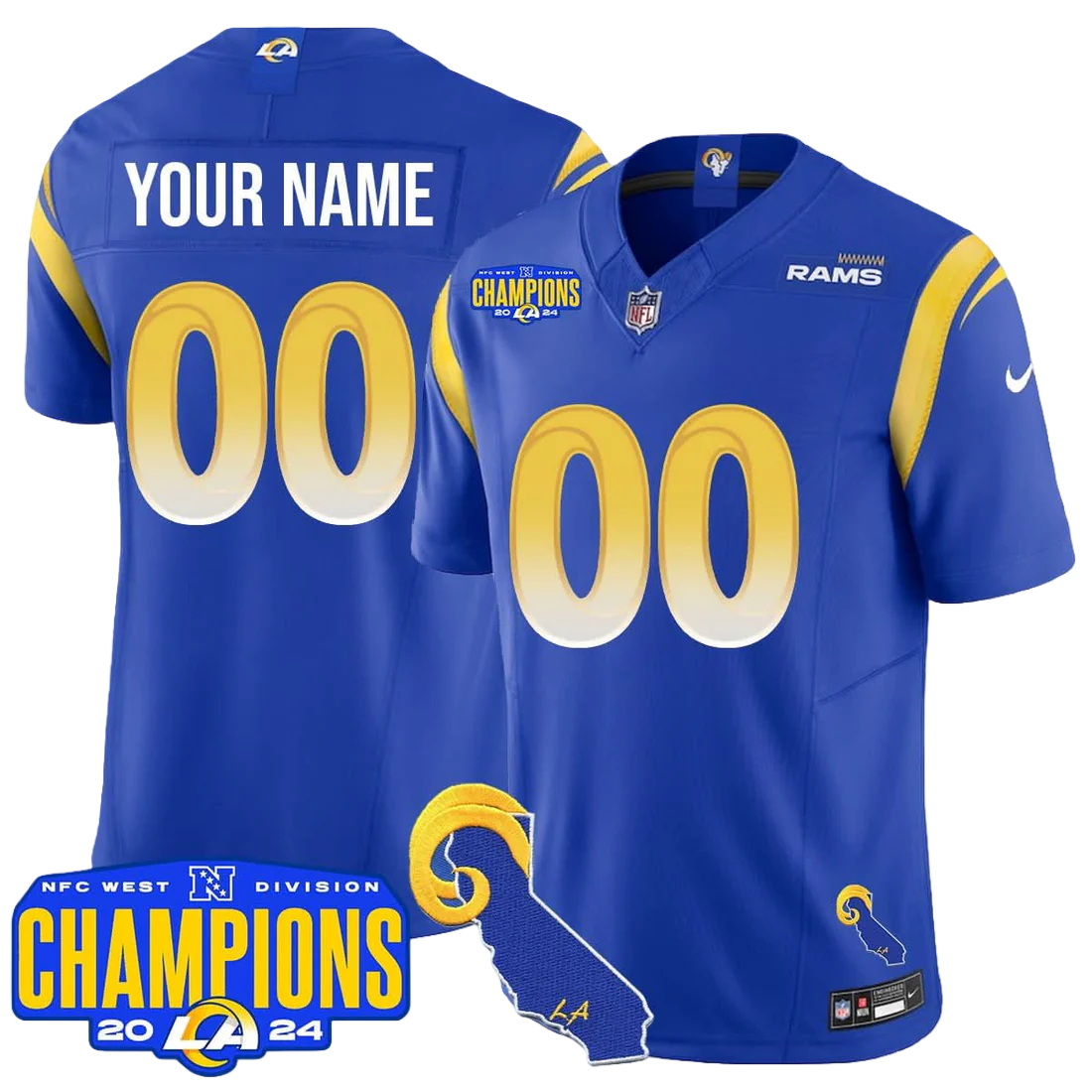 Los Angeles Rams Custom 2024 NFC West Division Champions Jersey - All Stitched 2