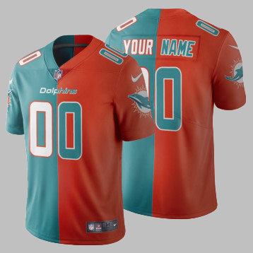 Miami Dolphins All Stitched NFL Custom Aqua Green Orange Split Jersey - Men's & Women's & Youth & Toddler