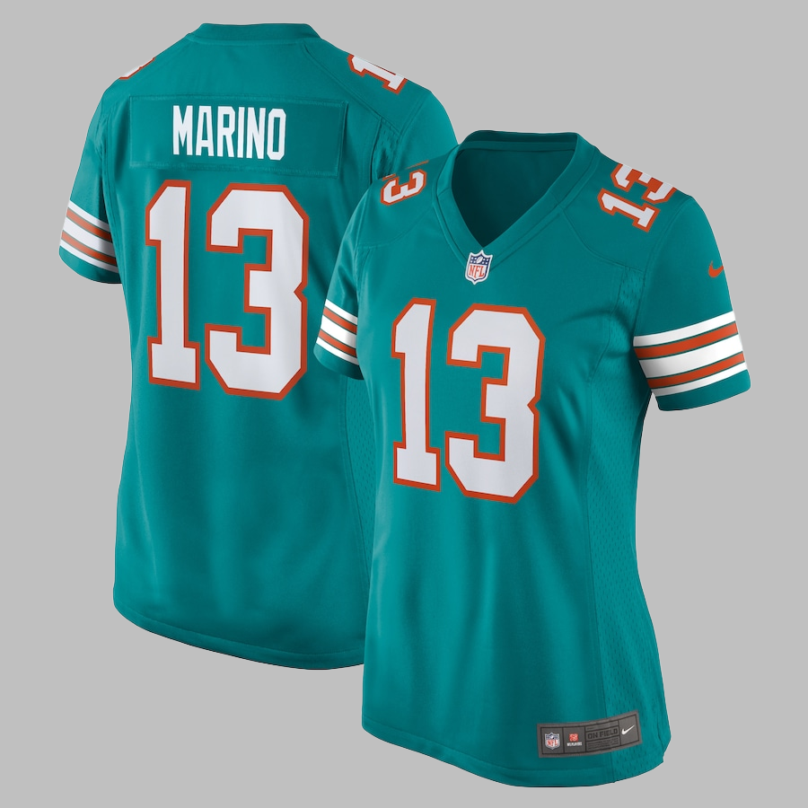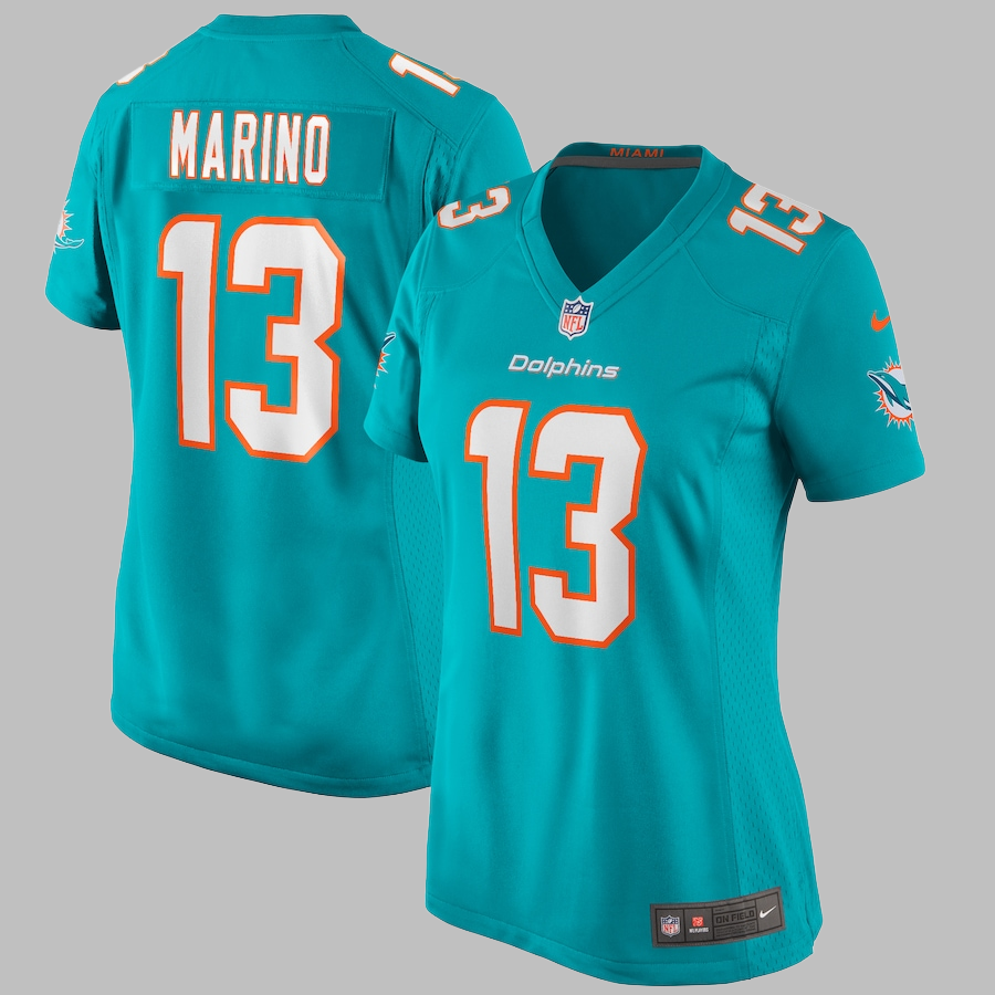 Women's Miami Dolphins #13 Dan Marino All Stitched NFL Aqua Alternate Jersey