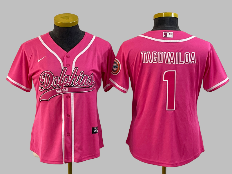 Women's Miami Dolphins #1 Tua Tagovailoa All Stitched NFL x MLB Limited Jersey MD0003