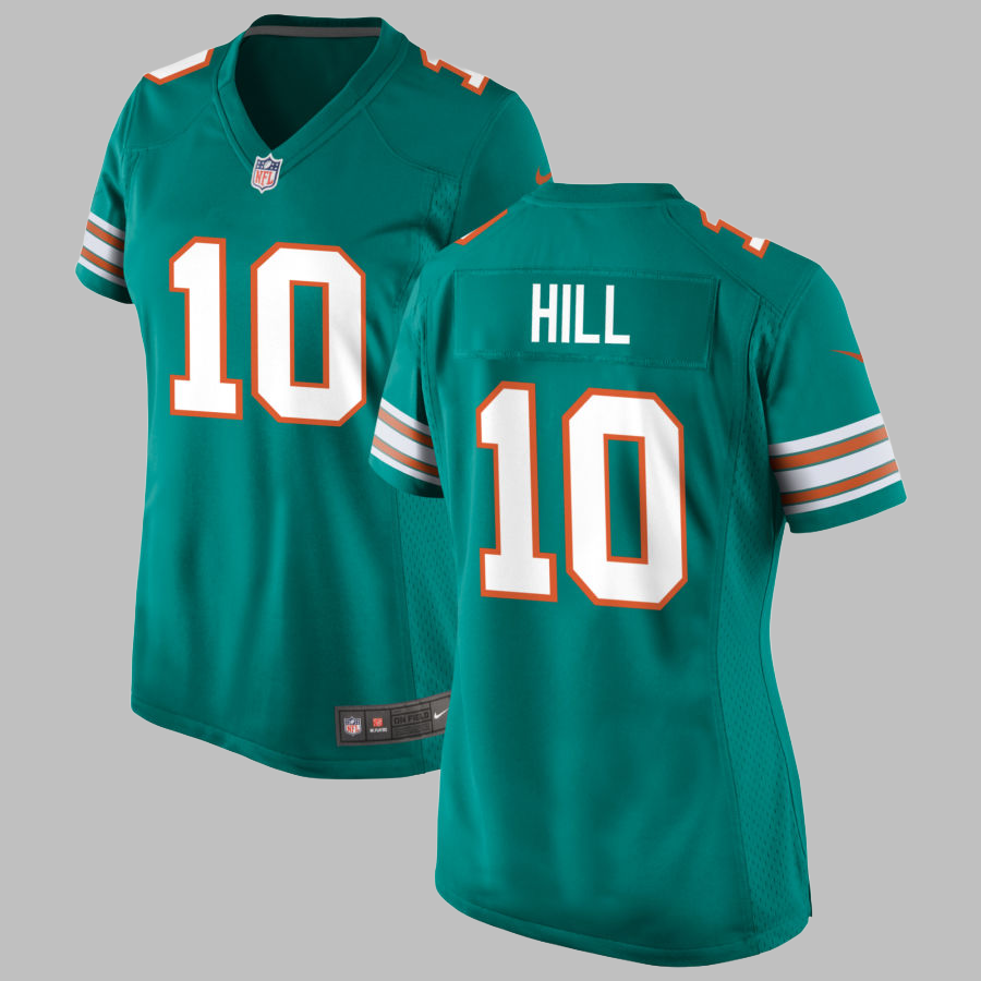 Women's Miami Dolphins #10 Tyreek Hill All Stitched NFL Aqua Alternate Jersey