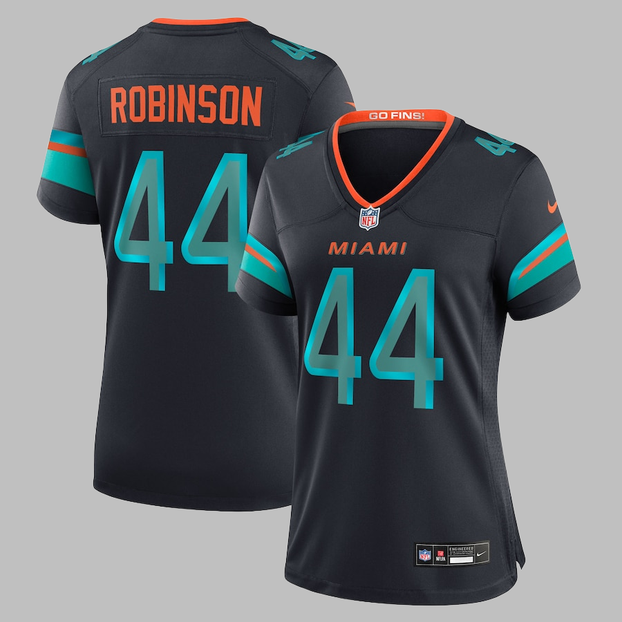 Women's Miami Dolphins #44 Chop Robinson All Stitched NFL Pitch Blue 2025 Rivalries Collection Jersey