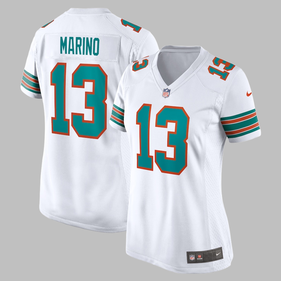 Women's Miami Dolphins #13 Dan Marino All Stitched NFL White Alternate Jersey