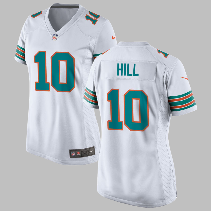 Women's Miami Dolphins #10 Tyreek Hill All Stitched NFL White Alternate Jersey