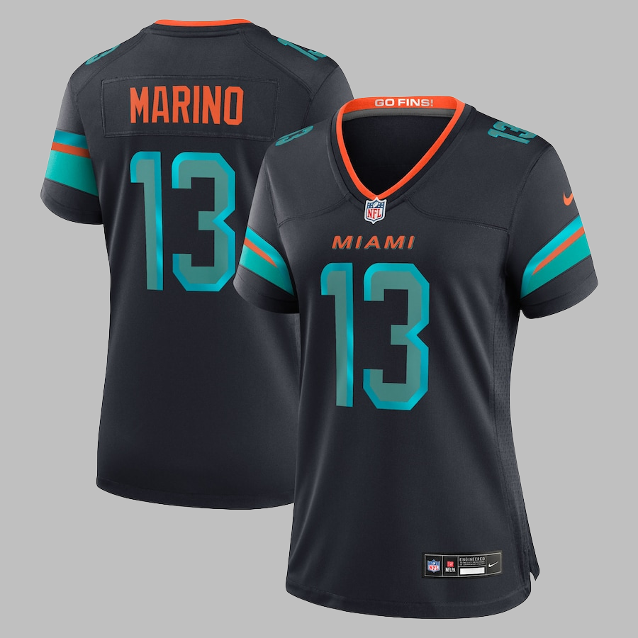Women's Miami Dolphins #13 Dan Marino All Stitched NFL Pitch Blue 2025 Rivalries Collection Jersey