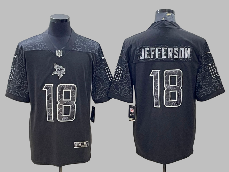 Men's Minnesota Vikings #18 Justin Jefferson Stitched Black Reflective Limited NFL Jersey
