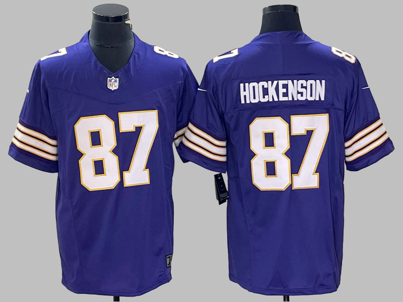 Men's Minnesota Vikings #87 T. J. Hockenson Stitched Limited NFL Jersey Purple