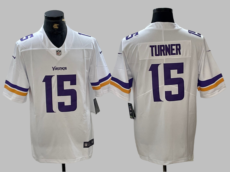 Men's Minnesota Vikings #15 Dallas Turner Purple Stitched Limited NFL Jersey White